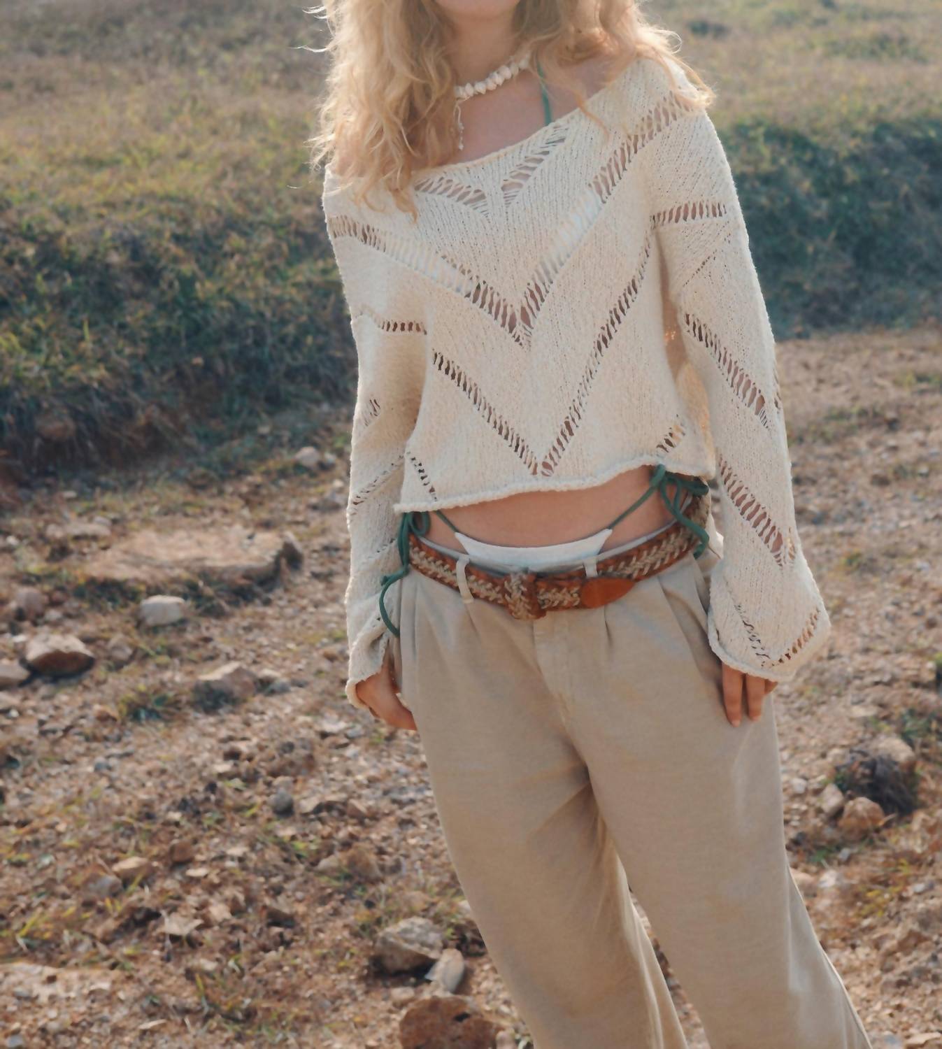 Caimento relaxado e folgado. Decote em V, ombros caídos, estilo de malha aberta, caimento levemente cropped. Lavar à mão com água fria. 100% algodão. Importado. Guia de medidas: Busto: 127 cm. Comprimento: 40 cm. Comprimento da manga: 47 cm.
