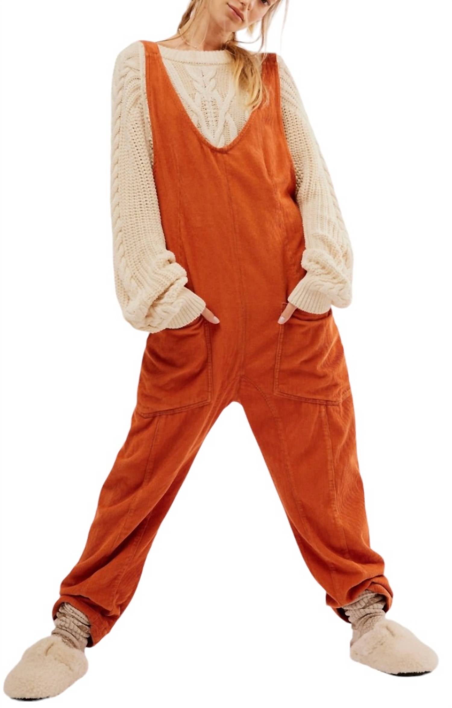 O macacão, com caimento solto e descontraído, apresenta comprimento até o tornozelo em veludo cotelê resistente. Com decote profundo e detalhe de costura por toda a peça, apresenta bolsos grandes e pernas estilo harém com virilha caída. As costas decotadas são complementadas por alças ajustáveis para um ajuste personalizado. Confeccionado em 100% algodão, combina conforto com um toque de estilo.