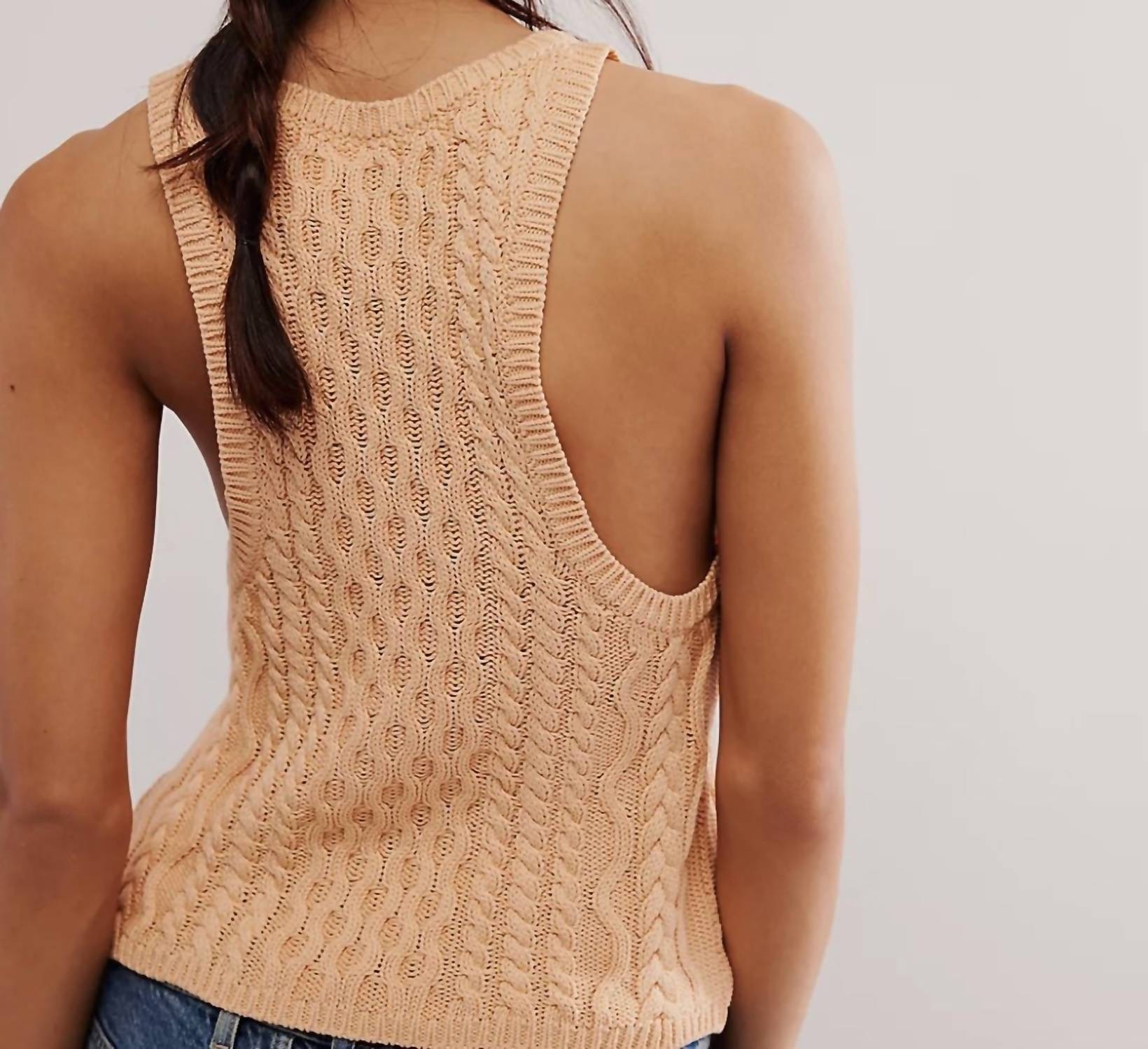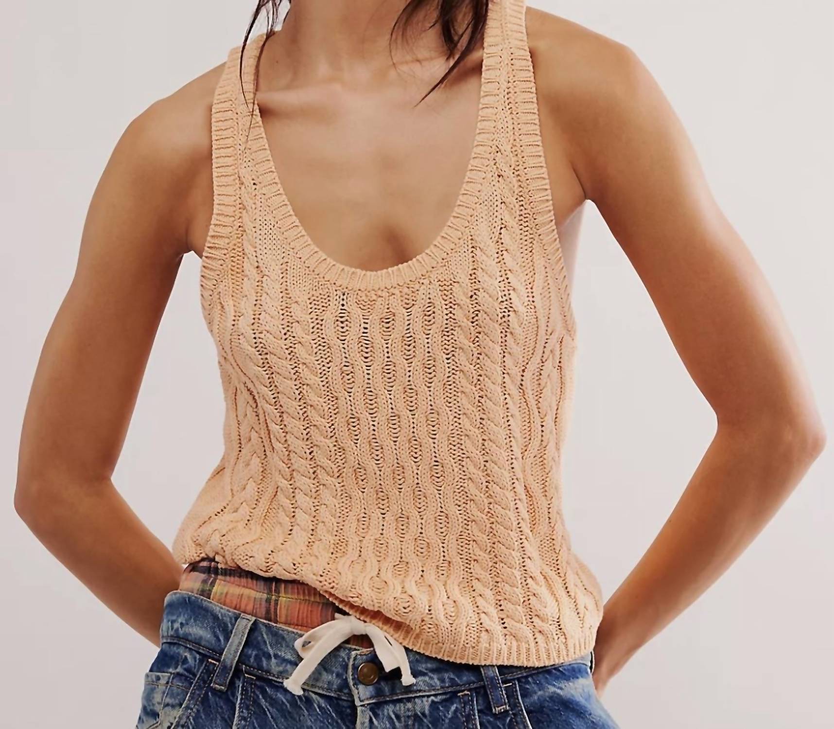 Apresentamos o High Tide Cable Knit da Free People, uma regata sem mangas em um charmoso tom damasco. Confeccionada em 100% algodão, esta peça oferece conforto respirável e estilo despojado. Desenhada com decote redondo e estampa lisa, ela combina elegância moderna com artesanato clássico. Esta regata pull-on exige cuidado, com lavagem à mão em água fria, garantindo que continue sendo uma peça essencial no seu guarda-roupa.