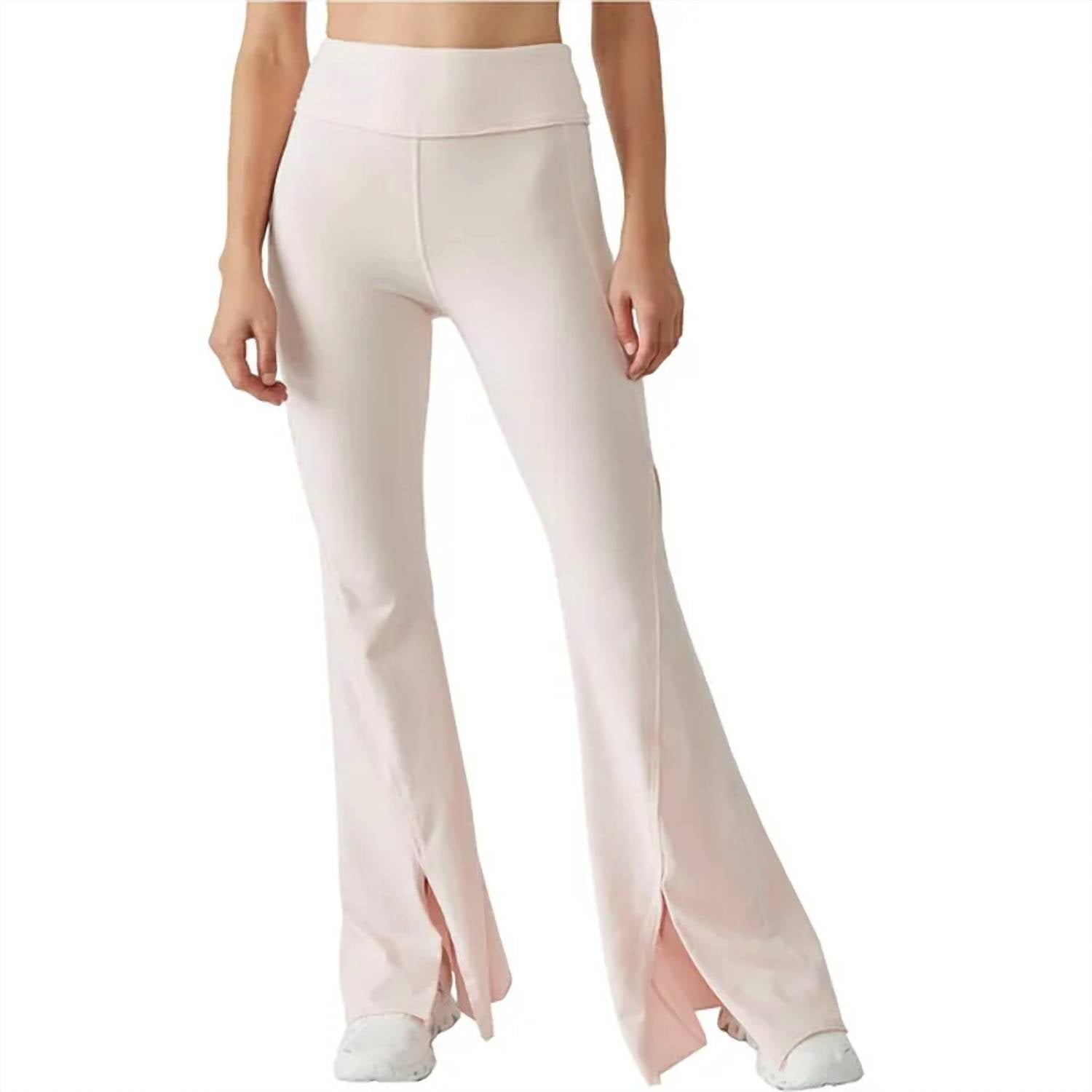 Fique na moda com estas calças boot cut estilosas e com caimento perfeito. A combinação perfeita de conforto e estilo, você vai querer usá-las a estação toda! Calça de cintura alta Deliciosa Touch Of Pink. Apresenta composição em algodão macio e perna flare estilosa com detalhes de fenda frontal, oferecendo conforto e um caimento perfeito. O estilo pull-on garante praticidade e conforto. O caimento elástico a torna perfeita para relaxar ou para um passeio casual. Lavável à máquina para fácil manutenção.