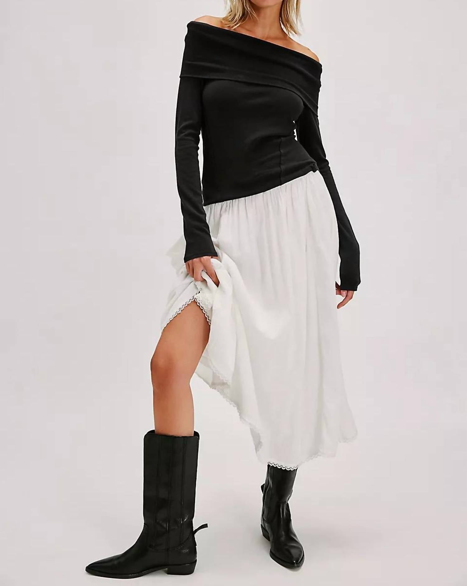 Esta blusa feminina é confeccionada em uma mistura de algodão com 94% algodão e 6% elastano, oferecendo um caimento justo e relaxado, com detalhes marcantes de ombros à mostra e decote dobrado. Com mangas compridas e detalhes de costura aparente, pode ser usada em camadas sem esforço em todas as estações. Fechamento: Sem fecho. Cuidados: Lavar à máquina com água fria.