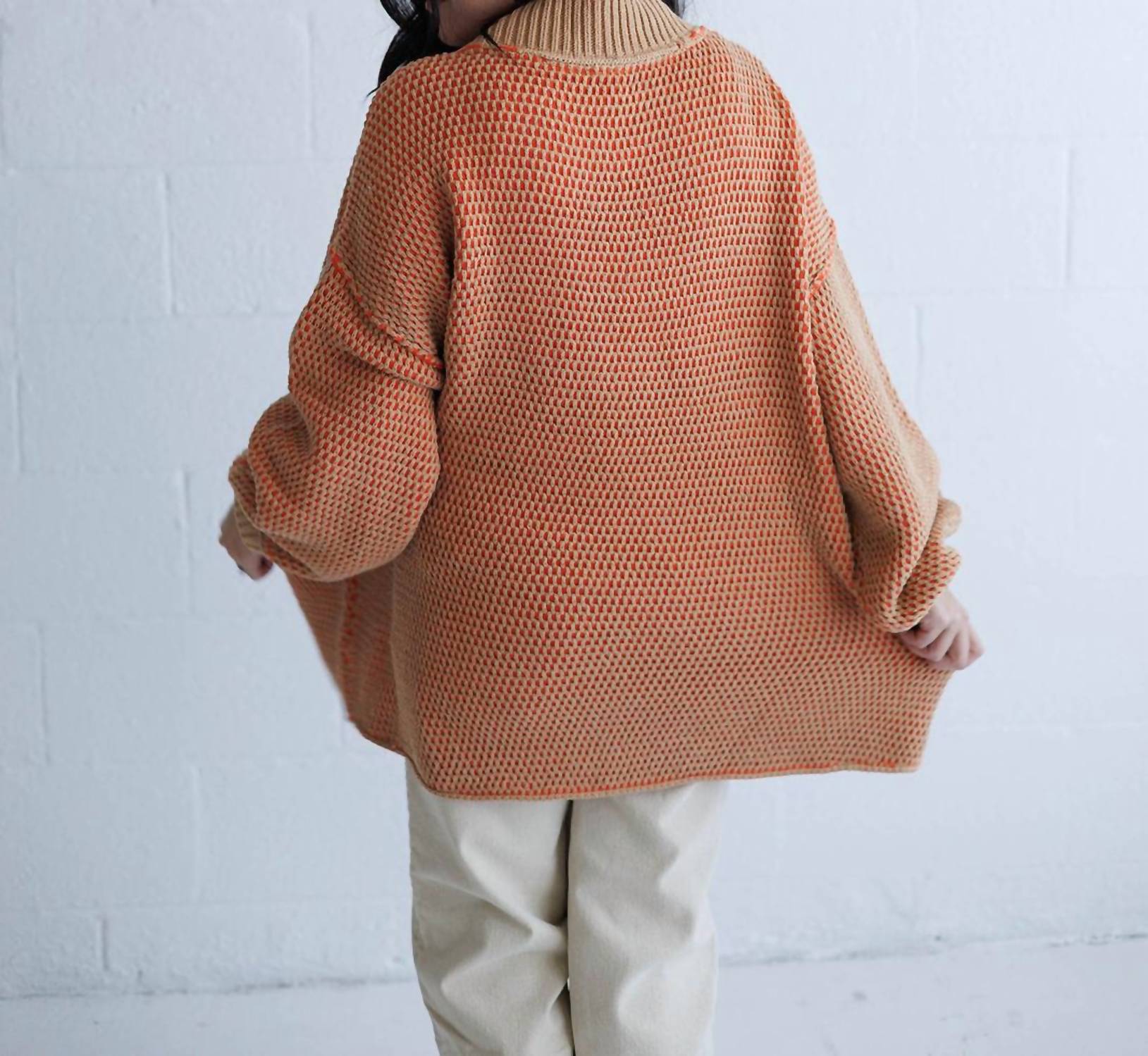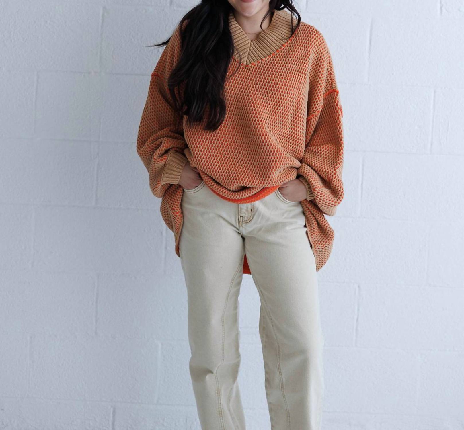 O suéter Maisie com gola V da Free People combina conforto aconchegante com estilo chique, tornando-se um item essencial no guarda-roupa. Ele tem mangas compridas e é confeccionado em uma mistura macia de algodão para um toque luxuoso e delicado. Esta malha texturizada apresenta um caimento folgado e oversized, com decote em V e mangas caídas, perfeito para usar em várias estações. Disponível na moderna combinação Camel Tangerina, este suéter combina elegância casual com praticidade no dia a dia.