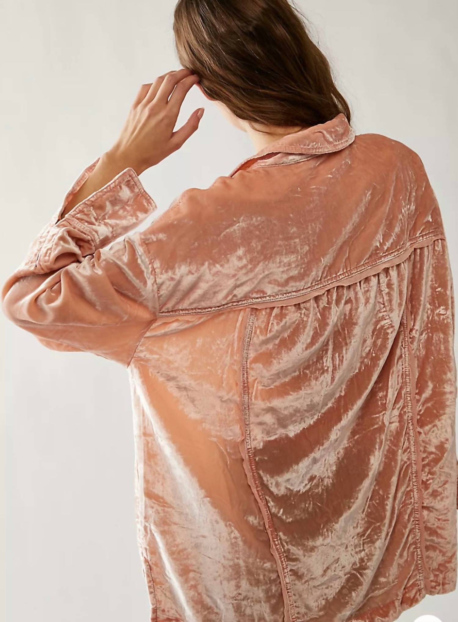 Confeccionado em veludo macio e suntuoso. Gola clássica. Fecho de colchetes no centro da frente. Franzido nas costas. Punhos divididos. Punhos com fecho de colchetes. Bordas desfiadas. 75% Viscose. 25% Poliamida. Fabricado no Vietnã. Lavar à mão.
