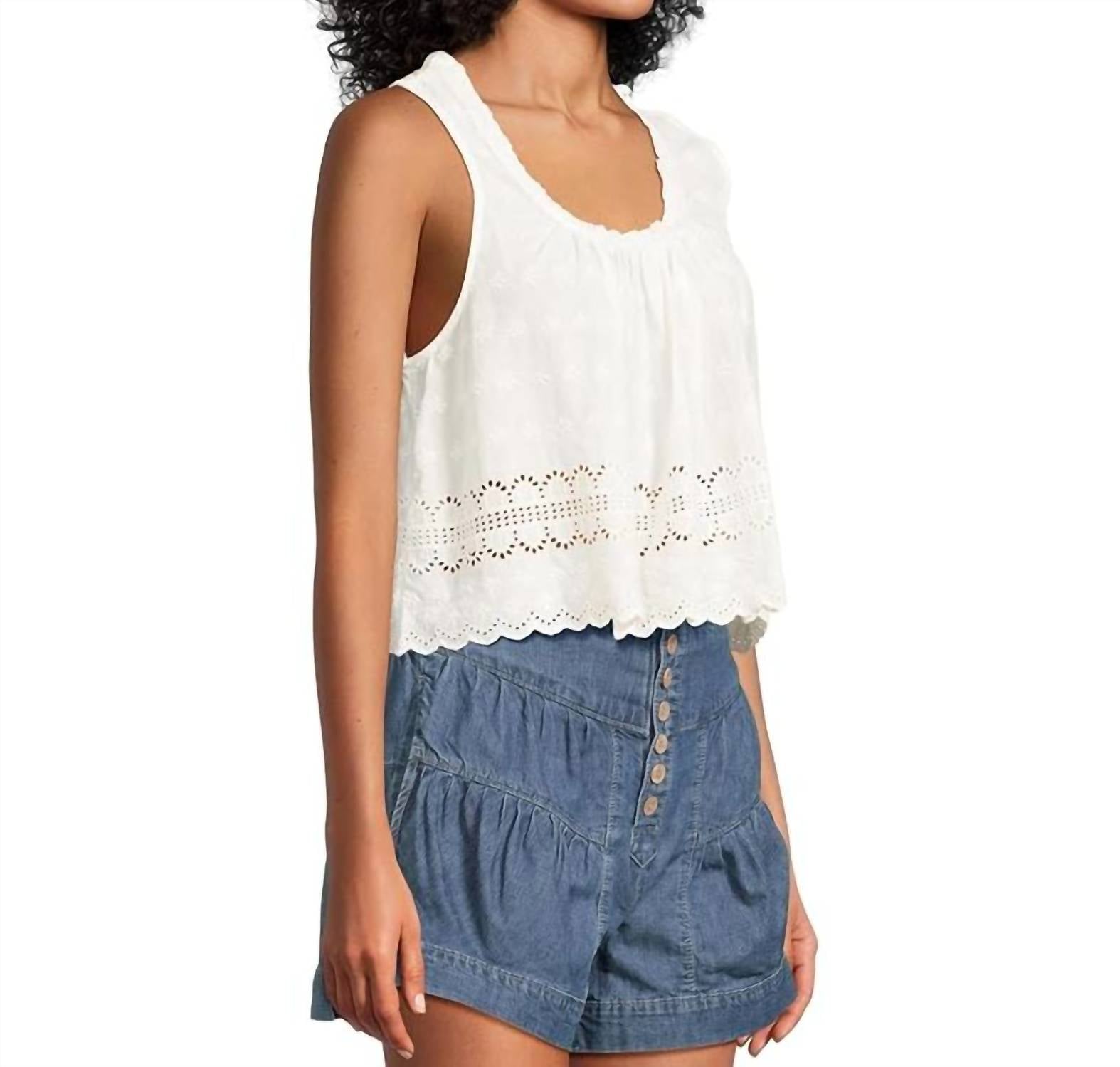 A regata perfeita para as estações mais quentes. Apresentamos a regata Marina Eyelet da Free People em um tom impecável de marfim limpo. Esta blusa sem mangas apresenta uma estampa texturizada com decote redondo feminino, perfeita para criar um look chique para o dia a dia. Confeccionada em 100% algodão, esta regata oferece conforto e respirabilidade para uso em climas quentes. Fechamento: Puxe para vestir. Cuidados: Lavar à máquina.