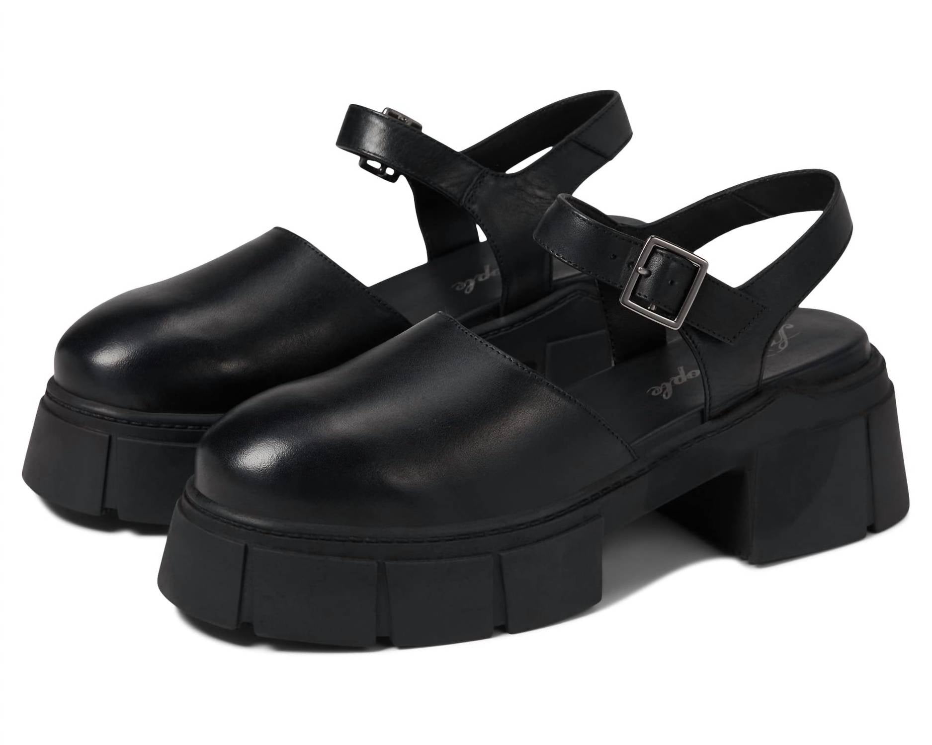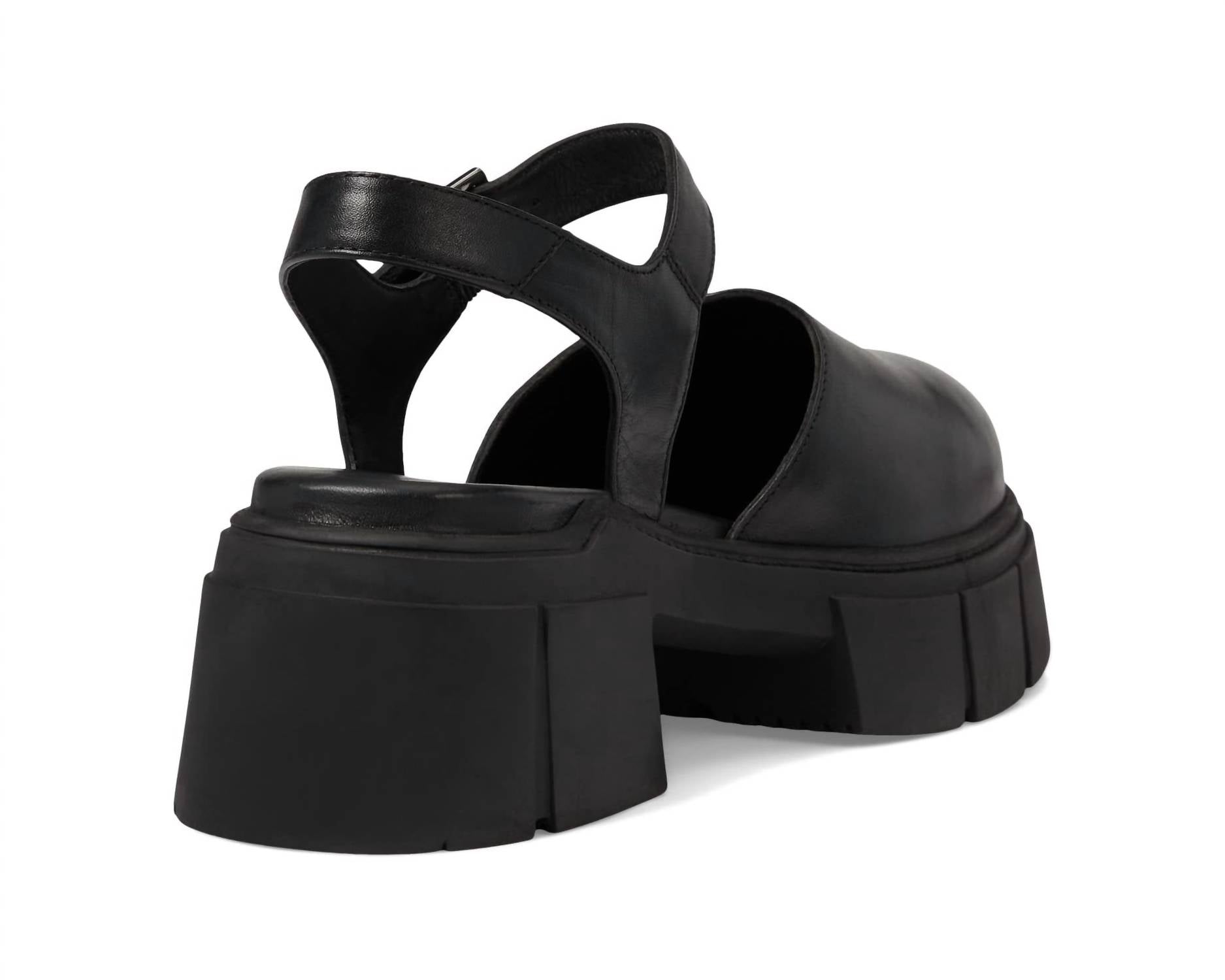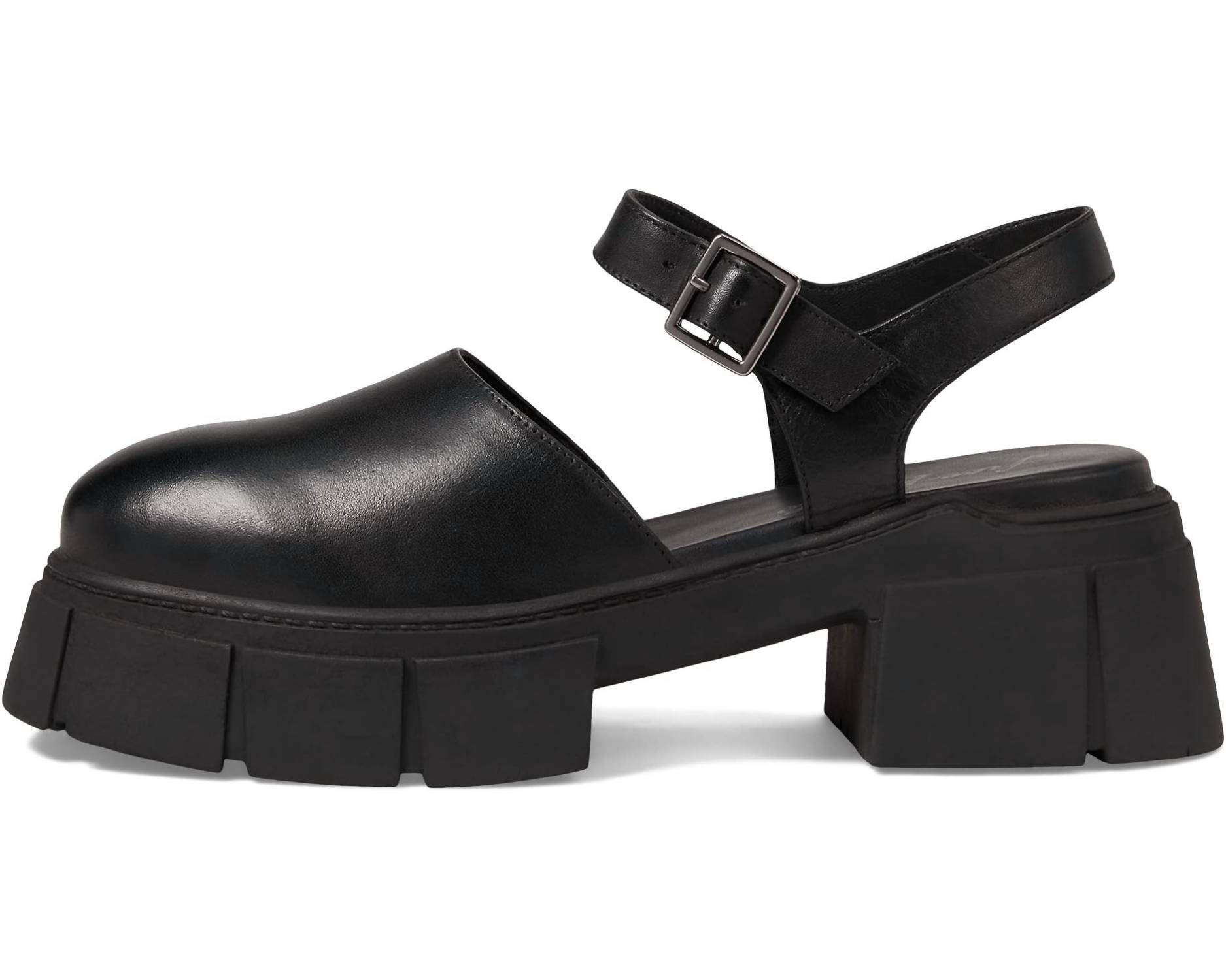 Cabedal, forro e palmilha em couro. Fecho com fivela ajustável. Biqueira arredondada e elegante. Salto bloco. Solado sintético com travas. Importado. As medidas do produto foram tiradas no tamanho UE 38,5 (EUA Feminino 8,5), largura M. Observe que as medidas podem variar de acordo com o tamanho. Medidas: Altura do salto: 6,3 cm. Peso: 450 g. Altura da plataforma: 3,7 cm.