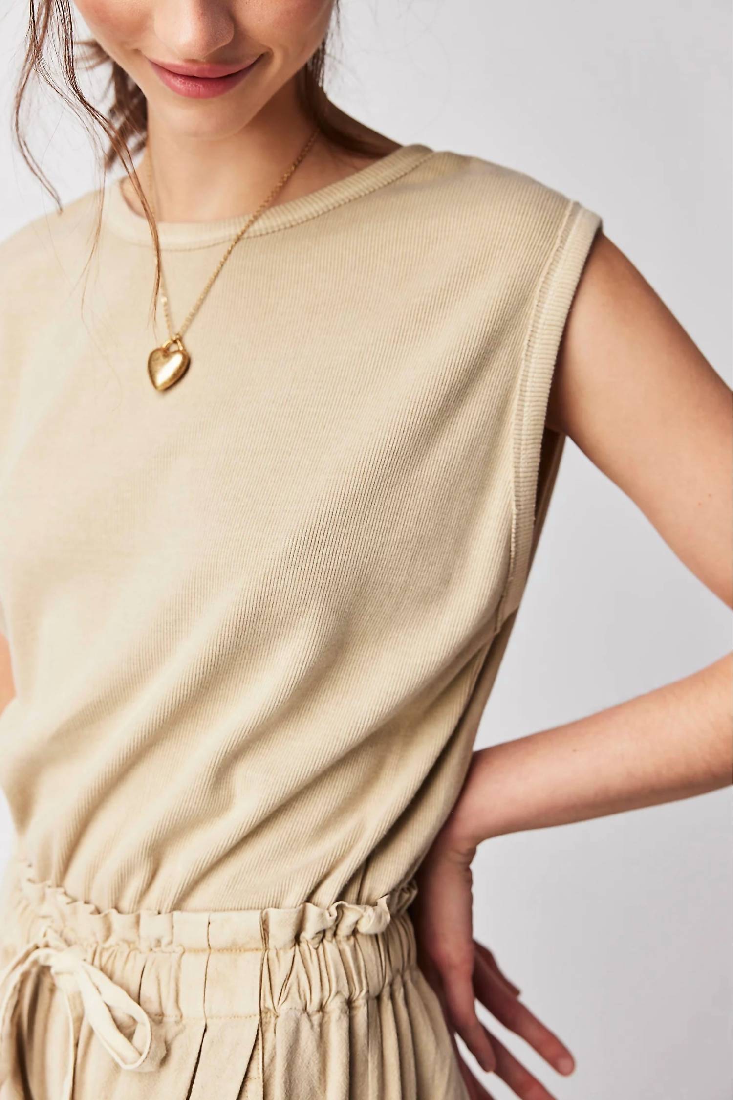 A escolha perfeita de roupa quando você precisa de algo rápido para vestir e ainda quer ter um visual descolado sem esforço. Combinação perfeita de conforto e estilo na cor Sand Jam. Com corpete inspirado em músculos e cós em tecido paper bag. Apresenta caimento relaxado e design de pernas afuniladas. Confeccionada em 100% algodão. Com fecho de botão, garante praticidade e um visual elegante. Fácil de cuidar, com lavagem à máquina. Confeccionada com detalhes cuidadosos, incluindo abertura nas costas e pernas franzidas.