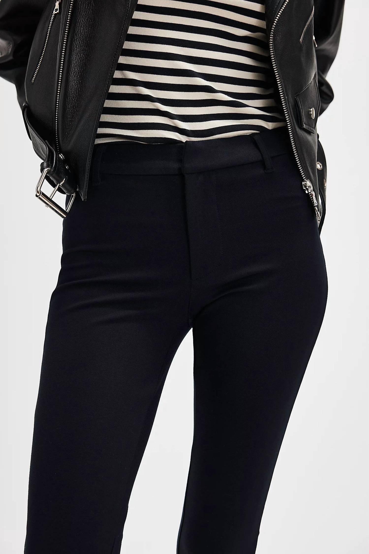 Apresentamos a Calça Molly Slim da Free People, uma peça essencial no guarda-roupa, criada para elegância e conforto. Esta calça de cintura média apresenta um corte ultrafino e perna skinny, complementada por uma malha chino estruturada. Feita em uma mistura de viscose (66% Viscose, 28% Nylon, 6% Elastano), ela vem com fecho de zíper e gancho, além de práticos bolsos traseiros embutidos. O cuidado é simples, com instruções de lavagem à máquina em água fria, garantindo que esta calça preta e lisa mantenha seu charme estação após estação.