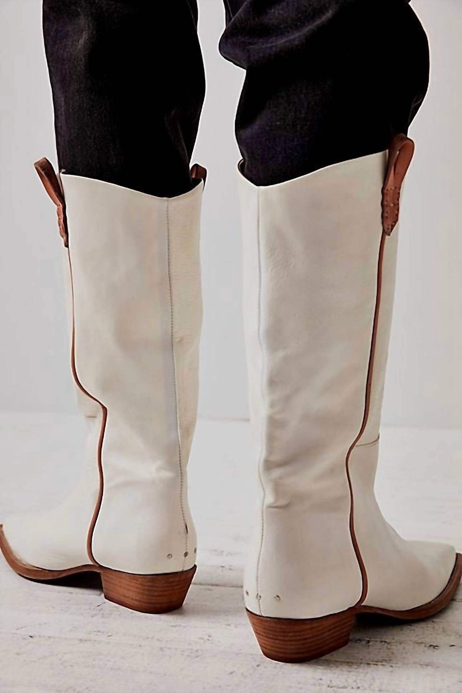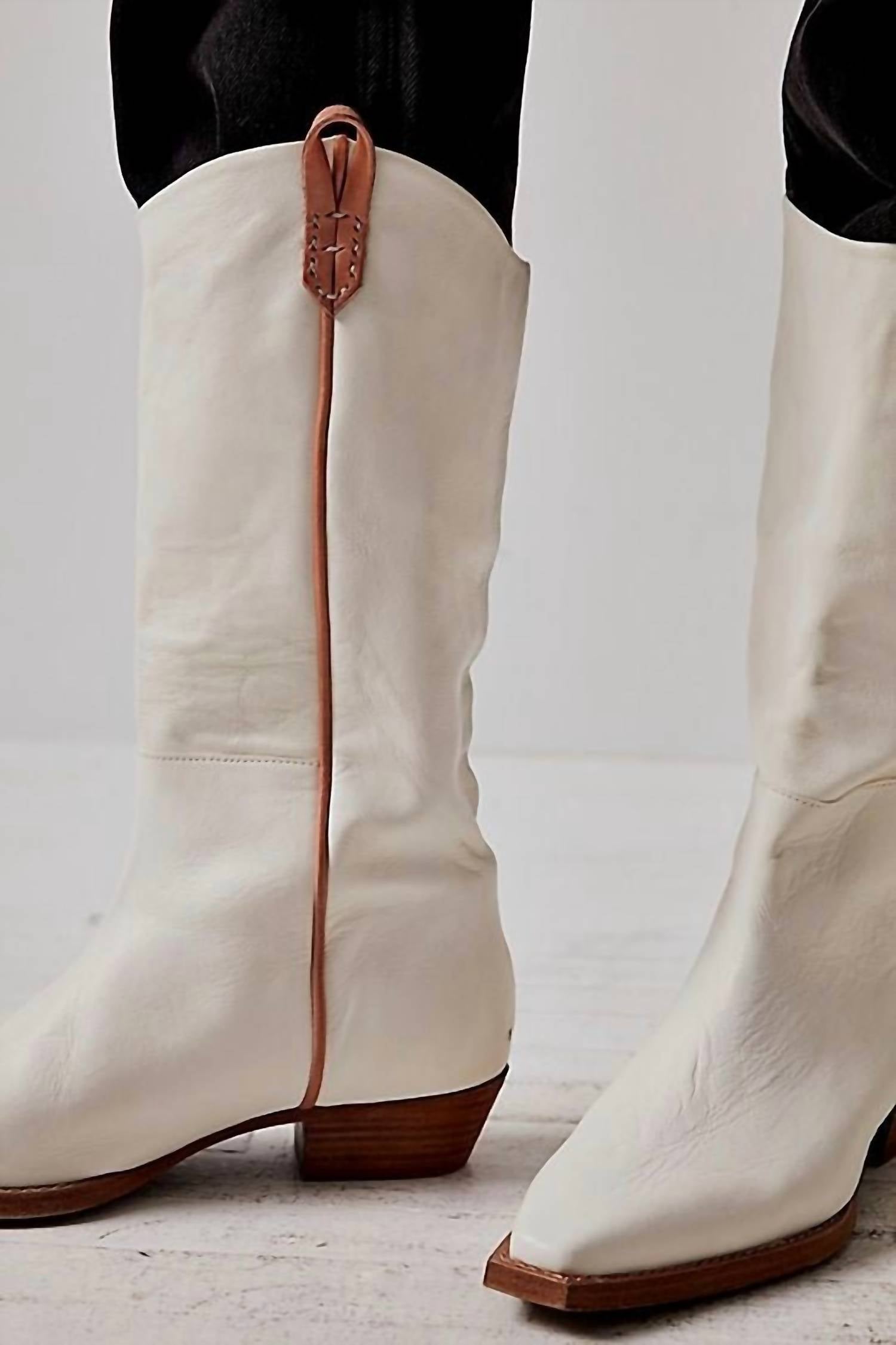 Botas de couro envelhecido apresentam um design inspirado no estilo western, com salto fino e baixo. Estilo pull-on. Palmilha acolchoada. Alças laterais. Este modelo é fiel ao tamanho, se estiver entre tamanhos; sugerimos um tamanho maior.