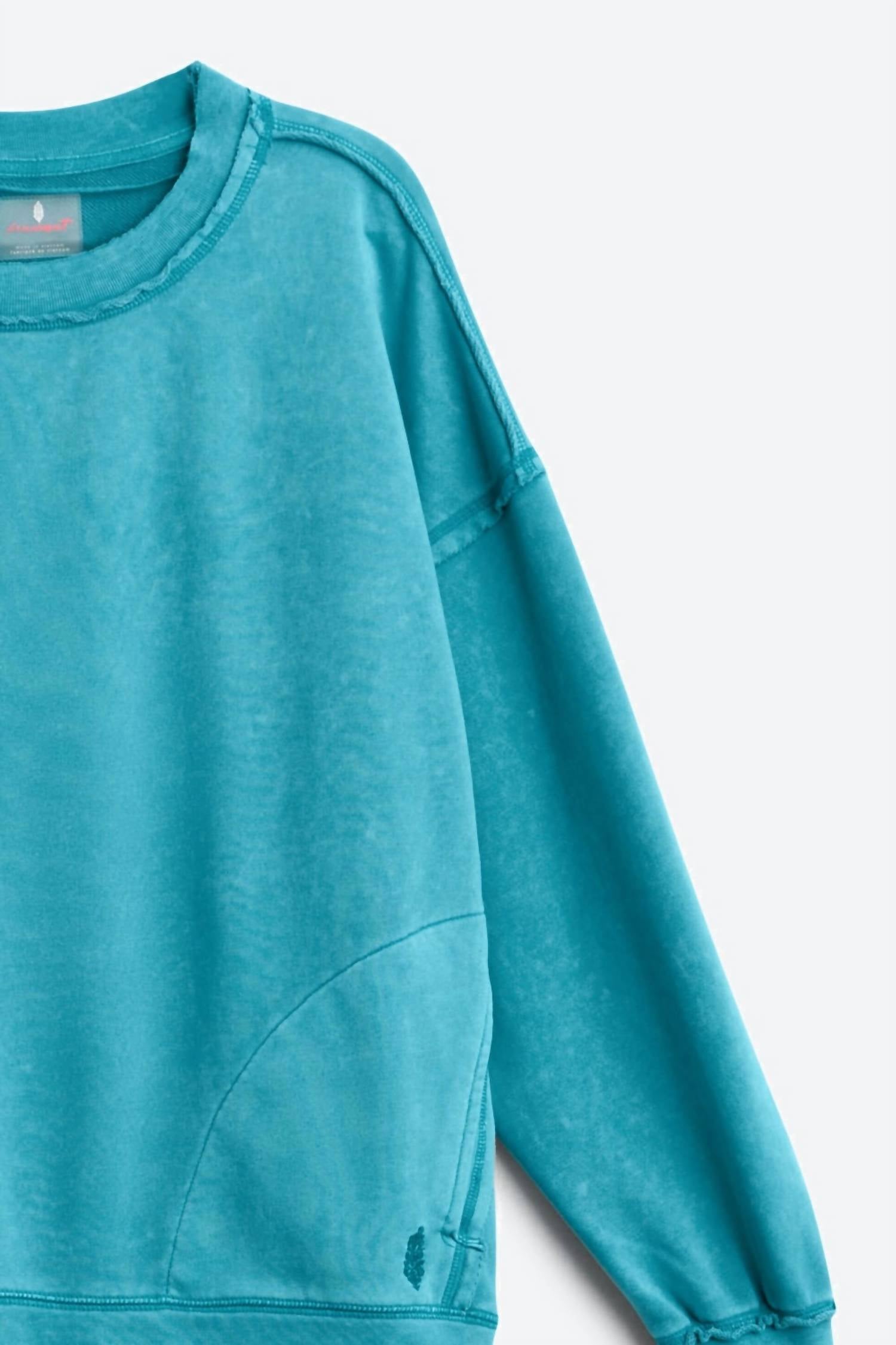 Mantenha-se aquecido e estiloso com esta peça essencial de tricô versátil e despojada. Use-o sozinho ou em camadas, é o suéter perfeito para a estação e você vai desejar tê-lo em todas as cores. Descubra o Moletom Movement Metti da Free People, uma peça de inspiração retrô perfeita para os seus dias casuais. Este design folgado e oversized apresenta mangas longas e caídas estilo dolman e um elegante estilo color block em azul-petróleo. Confeccionado em mistura de algodão, apresenta gola careca, bainha recortada e fecho prático. Observe as mangas franzidas divertidas e os bolsos práticos para maior funcionalidade.