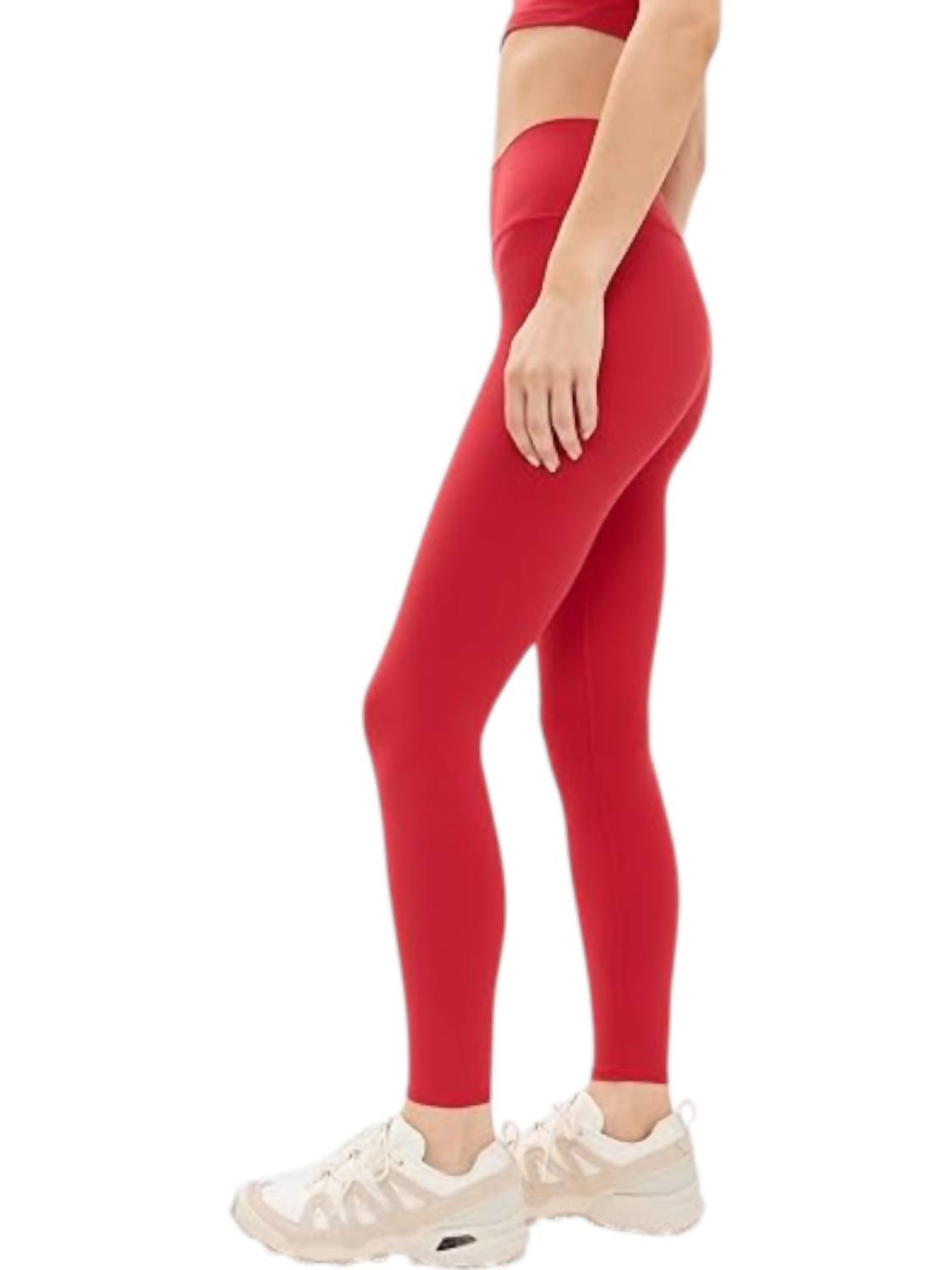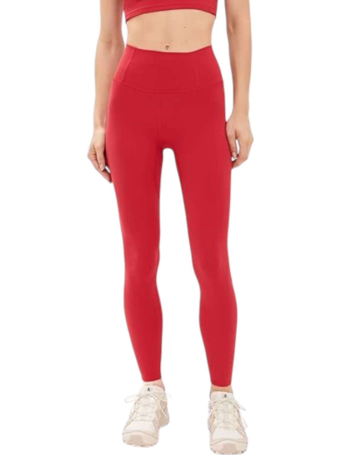 Leggings que você pode usar em qualquer ocasião. Confeccionada em uma mistura de 79% poliamida e 21% elastano, a legging vermelha com estampa lisa oferece um ajuste elegante e sustentação. Cintura alta e comprimento levemente cropped 7/8, com 62 cm de costura interna e 24,5 cm de altura. Oferece um ajuste confortável com propriedades de absorção de suor e elasticidade em quatro direções. Perfeita para atividades de baixo a médio impacto. Possui fecho pull-on. Pode ser lavada na máquina.