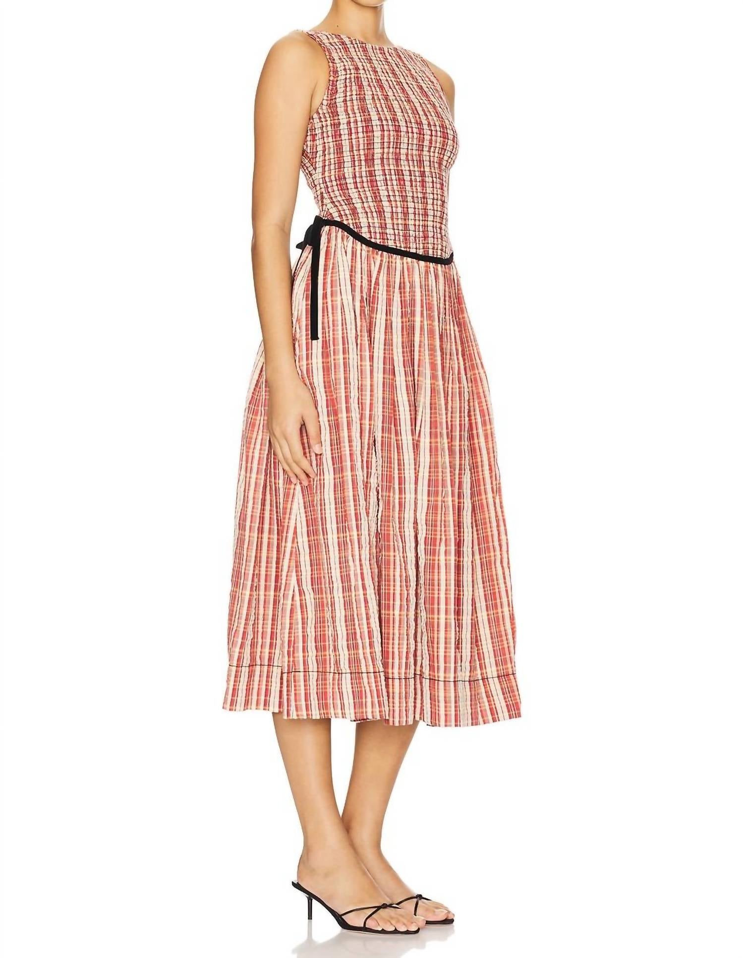 Um vestido midi tão versátil que suas opções de uso são infinitas. Apresentamos o Vestido Midi Xadrez Nightingale Smocked da Free People em uma combinação vermelha marcante. Abrace a elegância sem esforço com seu design sem mangas, confeccionado em 100% algodão com um forro confortável 100% rayon. Fabricado na Índia, este vestido midi de 124 cm apresenta um corte justo e evasê com gola alta e um charmoso padrão xadrez. Aproveite a praticidade do fecho pull-on e, para melhores resultados, lave à mão e seque no varal para garantir uma qualidade duradoura.