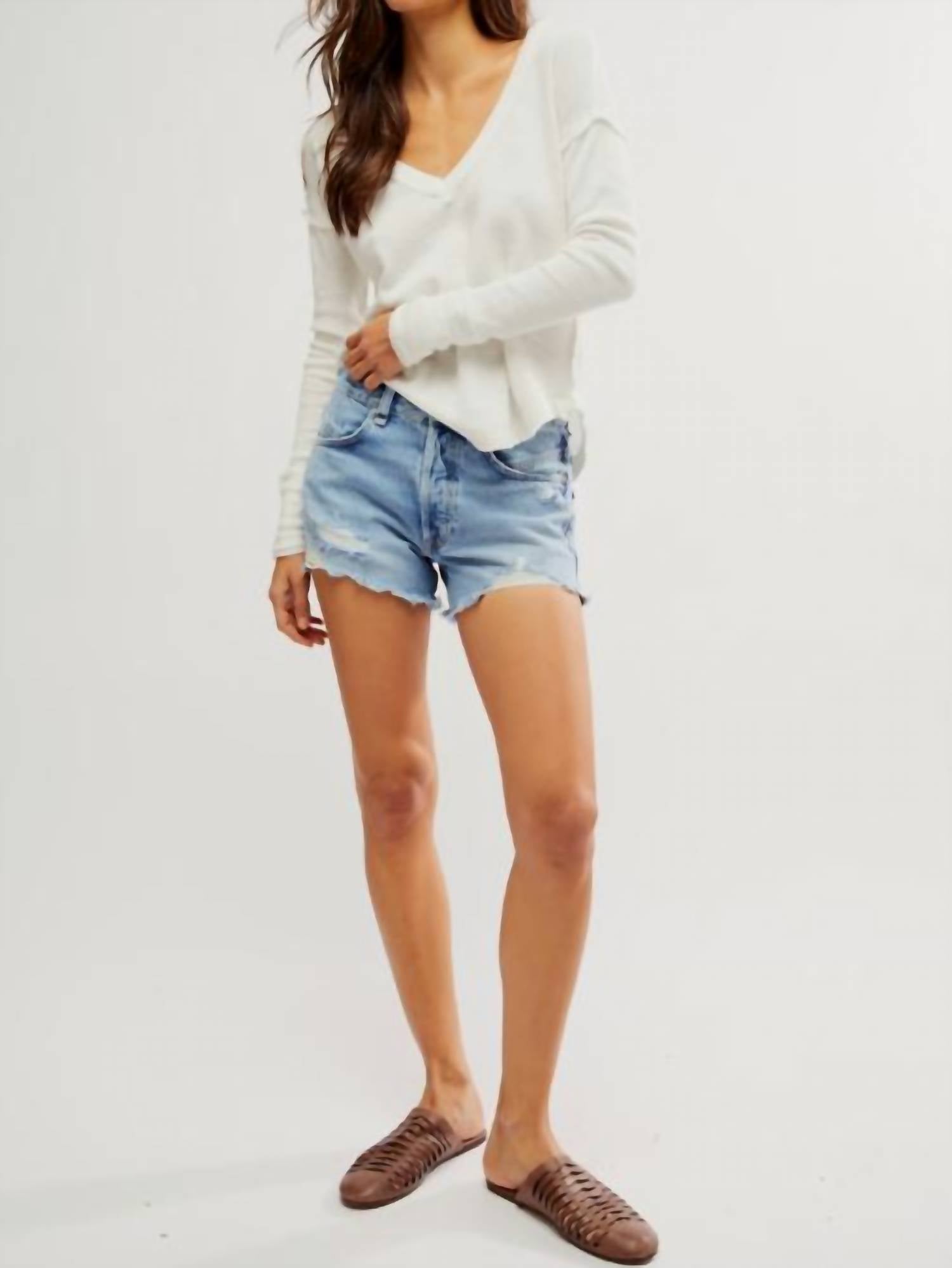 Com um ajuste perfeito, nós amamos esses shorts de cintura alta e você também vai adorar. Liberte seu estilo casual e descolado com o short jeans Free People Now Or Never na cor Moon Child. Com cintura alta e bainha desfiada e leve, este short sem elasticidade apresenta uma silhueta elegante. Confeccionado em 100% algodão, possui bolsos laterais e traseiros, garantindo praticidade e conforto com 7,6 cm de costura interna e 66 cm de abertura nas pernas. O fechamento é por zíper com botão, e o produto é importado. Instruções de cuidado: lavar na máquina e secar na secadora.
