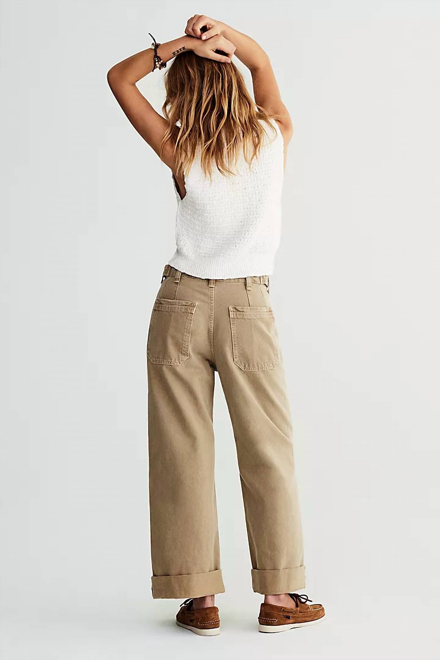 Apresentamos a Calça Jeans Palmer Cuffed da Free People na cor Savannah Khaki, uma adição versátil ao seu guarda-roupa da coleção We The Free. Confeccionada em denim, esta calça apresenta uma silhueta larga, de cintura média e folgada, com encaixe elegante para maior modelagem. Equipada com braguilha com zíper e botão, bolsos tipo canguru com costura e detalhes elegantes de botões no cós, além de bainhas com punho para um toque moderno. Perfeita tanto com botas elegantes quanto com tênis esportivos, esta calça oferece infinitas possibilidades de estilo. A modelo Paige, de 1,73 m, veste tamanho 26.