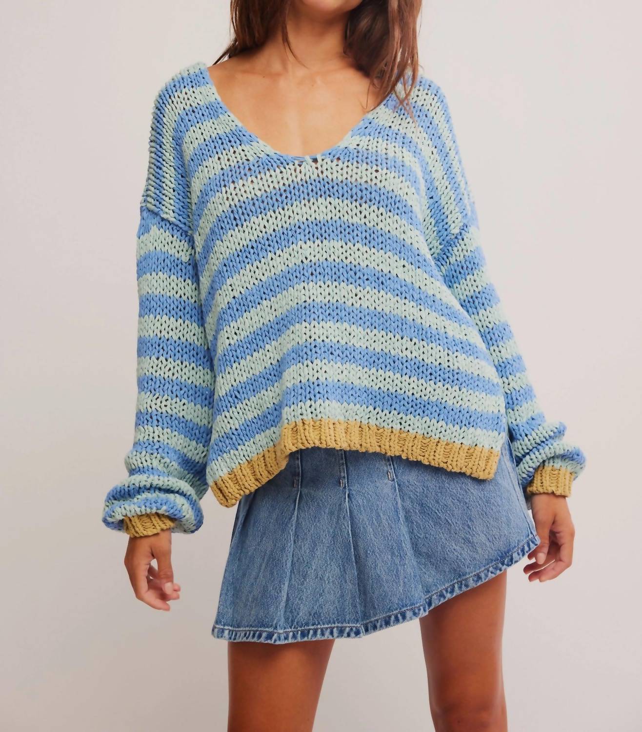 Um suéter atemporal com decote em V que funciona em todas as estações. Eleve seu guarda-roupa casual com o Pulôver Portland da Free People, uma peça de destaque da coleção Blue Lake. Este pulôver aconchegante com decote em V possui mangas longas e uma estampa listrada ousada, tornando-o perfeito para qualquer ocasião descontraída. Confeccionado em 100% algodão, oferece conforto e respirabilidade com um prático fecho de pressão. Ideal para quem ama designs únicos e divertidos.