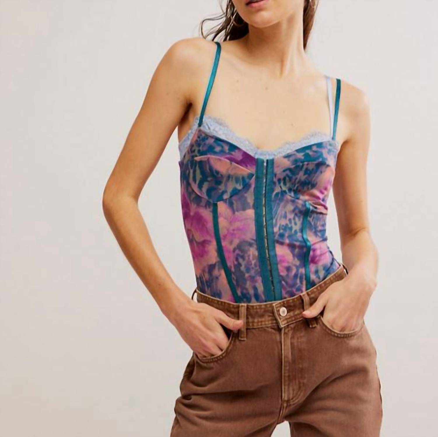Experimente a elegância do Body Night Rhythm Estampado da Free People com a cativante estampa floral Blue Lagoon. Este body possui alças finas ajustáveis, costuras contrastantes e decote coração, realçando seu charme inspirado em espartilhos. Confeccionado em malha de poliéster macia com bojos costurados, garante uma silhueta ajustada ao corpo e uma calcinha fio dental para um visual sem costuras. Fechamento: Fecho frontal com colchetes. Cuidados: Lavar à máquina para facilitar a manutenção.