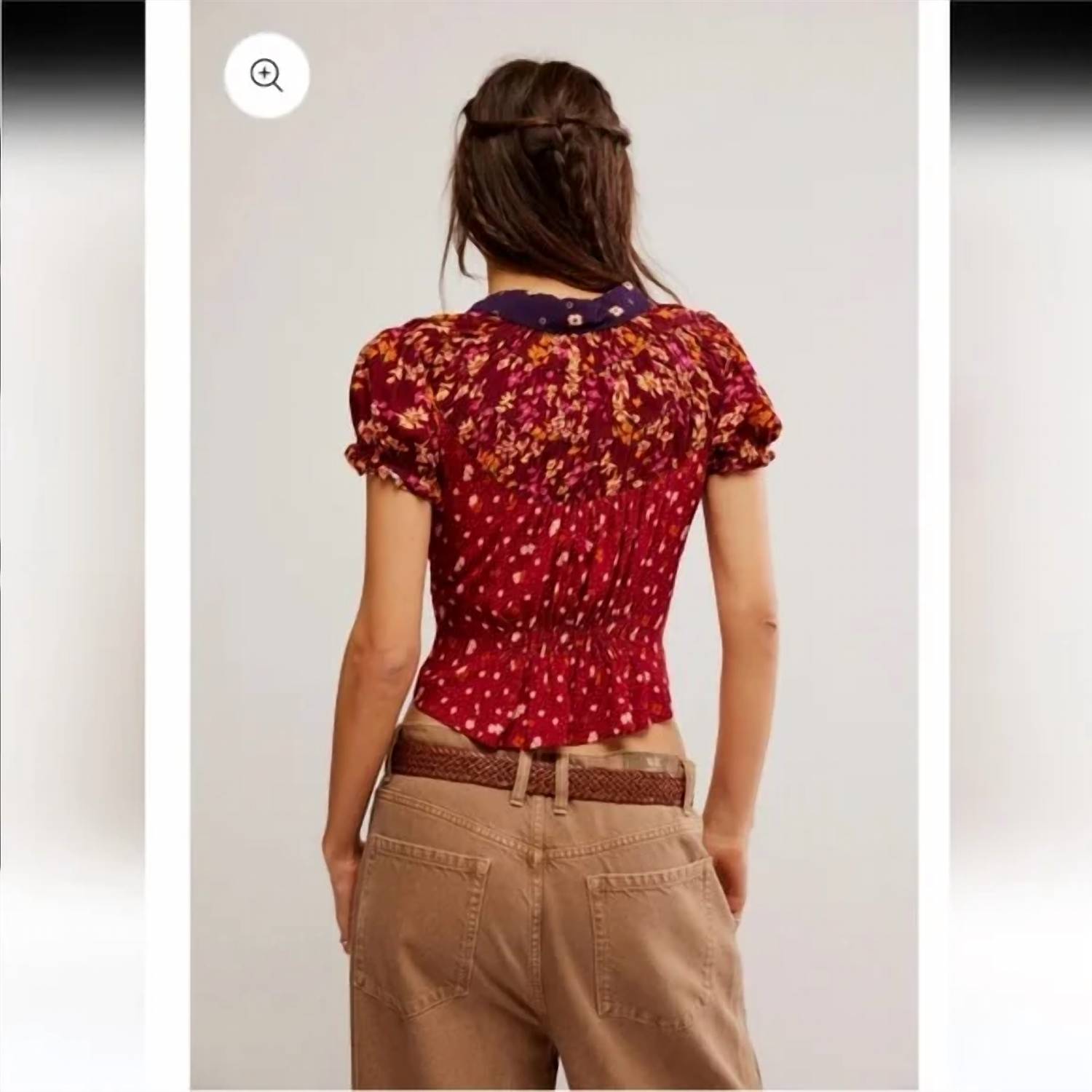 Elevate your style with this chic floral red blouse. Perfect for any occasion. This top combines comfort & elegance