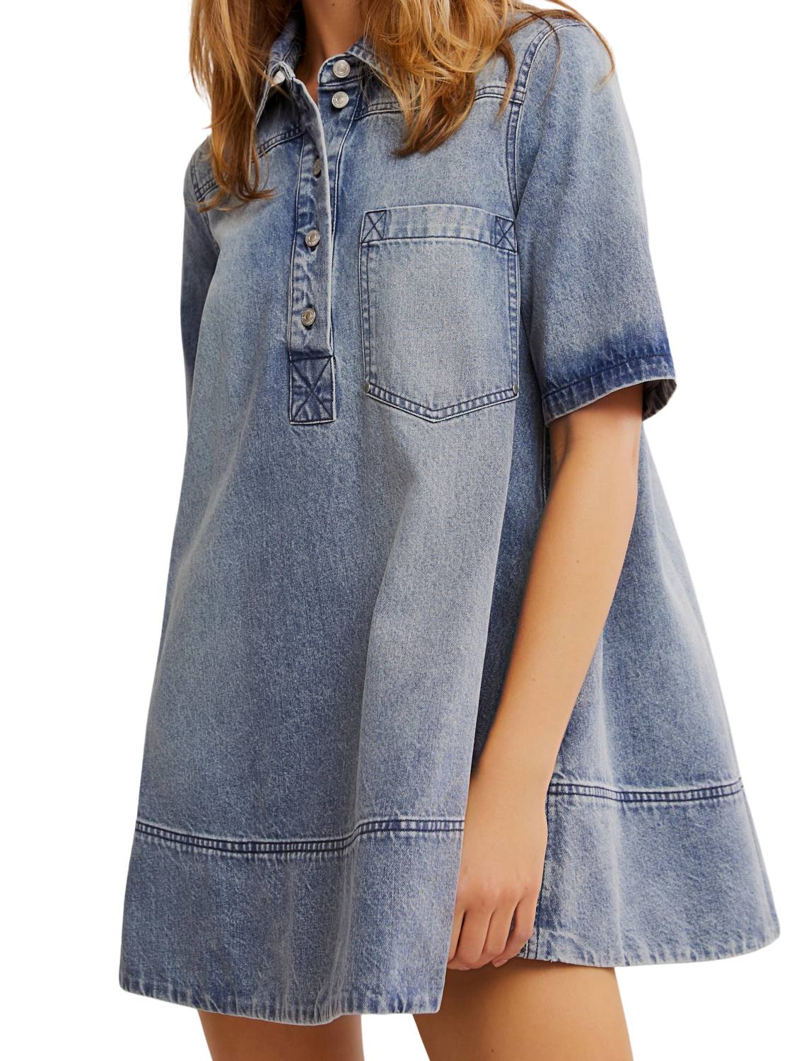 O minivestido perfeito para os meses mais quentes. Conheça o Minivestido Jeans Remino da Free People, uma peça chamativa em Azul Oceano com uma silhueta ampla e fluida, realçada por pregas acentuadas nas costas. Com mangas até o cotovelo e uma gola alta e elegante, este vestido 100% algodão apresenta uma conveniente abertura com botões. Com bolsos práticos no peito e nas laterais, esta peça importada mede 84 cm de comprimento. Para facilitar a manutenção, basta lavar na máquina e secar no varal.