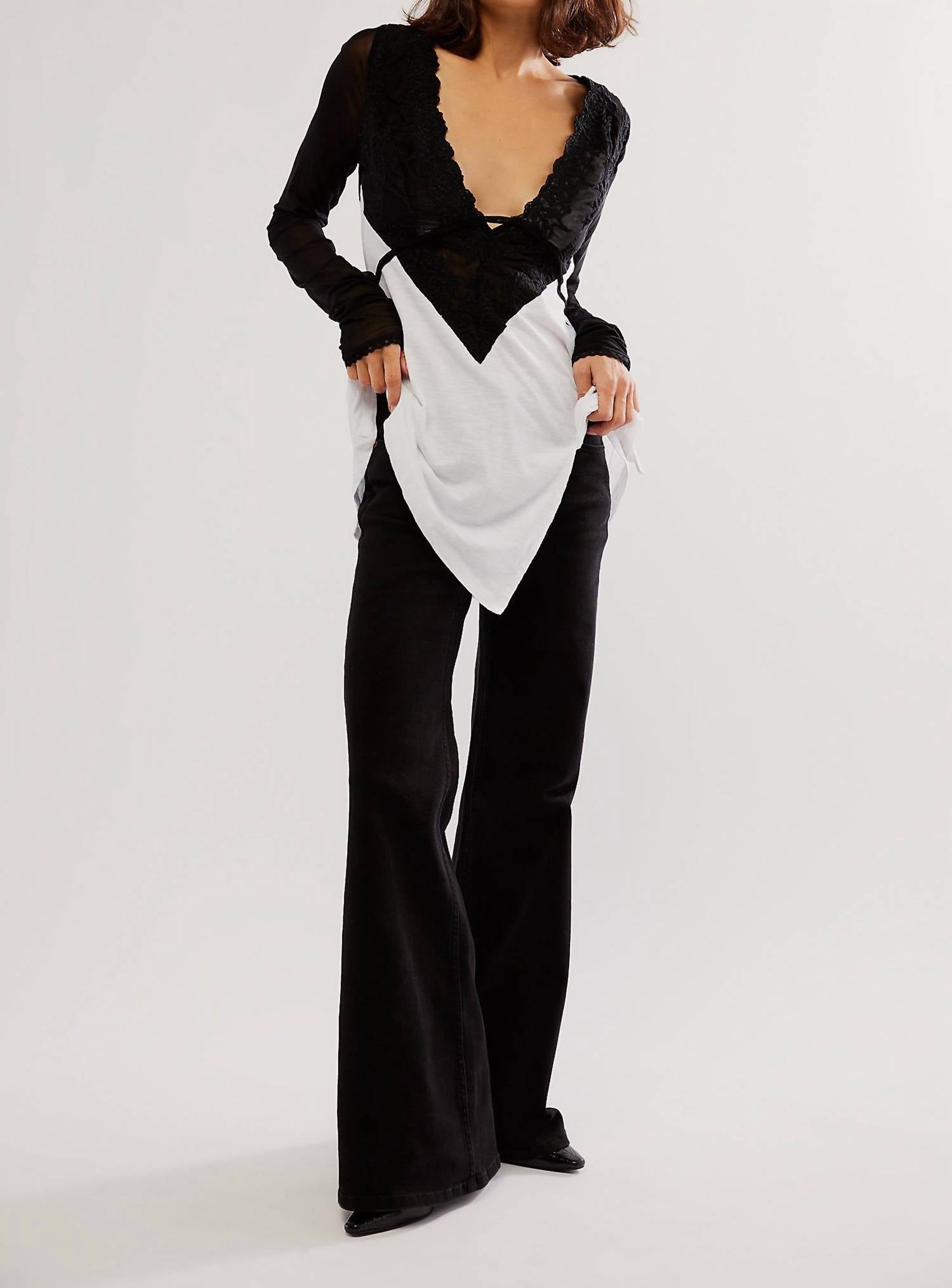 Esta blusa de manga comprida apresenta um tecido macio e silhueta ampla, com acabamento em renda e decote profundo. Modelagem: Slim fit no busto, parte inferior folgada. Características: Mistura de algodão macio, decote em V profundo, mangas compridas ajustadas, acabamento em renda, busto forrado. Lavar à mão com água fria. Importado. Medidas para tamanho pequeno. Busto: 84 cm. Manga: 79 cm. Comprimento: 87 cm. 54% algodão, 36% viscose, 10% linho. Contraste: 90% nylon, 10% elastano.