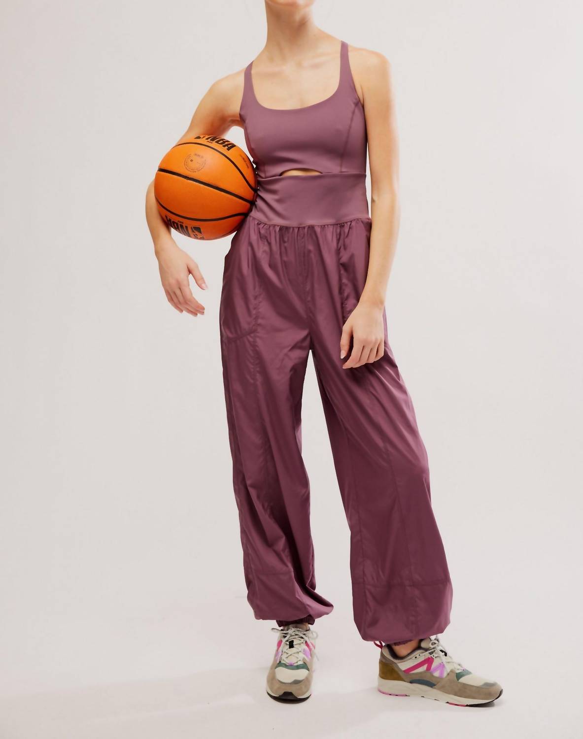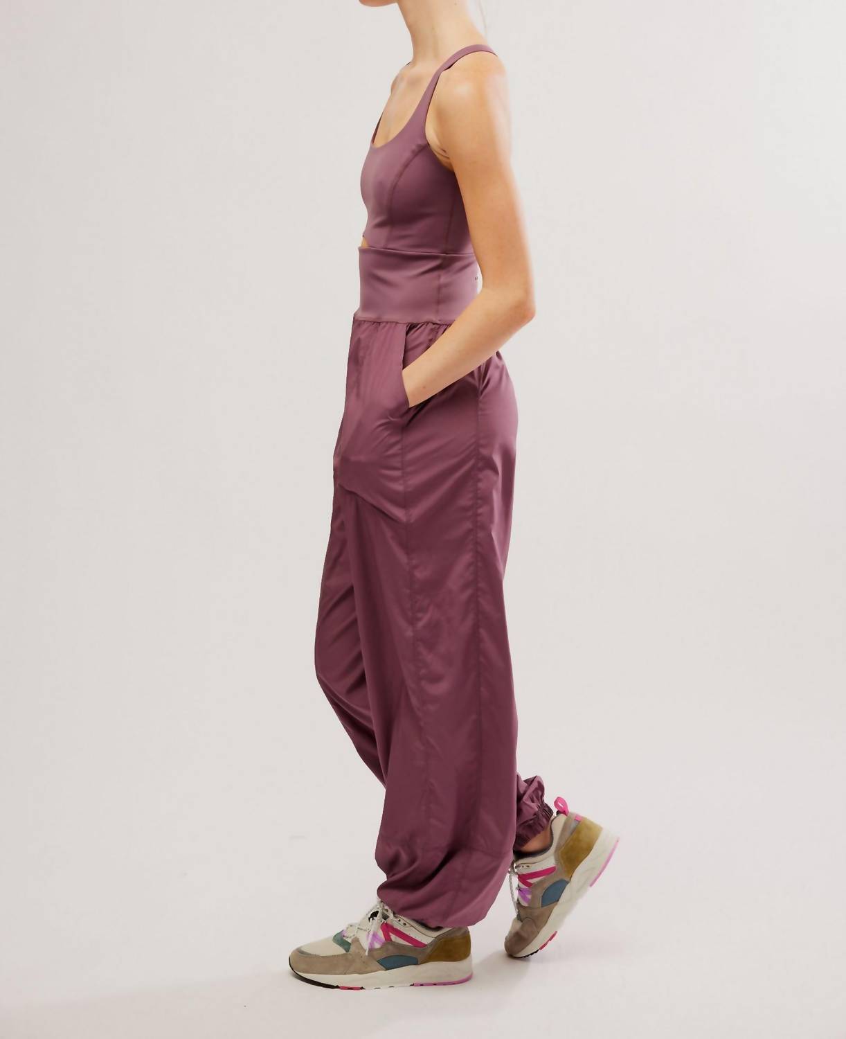 Decote redondo, recorte central, alças cruzadas, bolsos para as mãos e bolso com zíper nas costas, bainha franzida. Blusa justa, parte inferior folgada, comprimento até o tornozelo. Lavagem à máquina com água fria. Medidas para tamanho pequeno. Busto: 70 cm, Cintura: 62 cm, Quadril: 109 cm, Gancho: 30 cm, Perna: 72 cm.