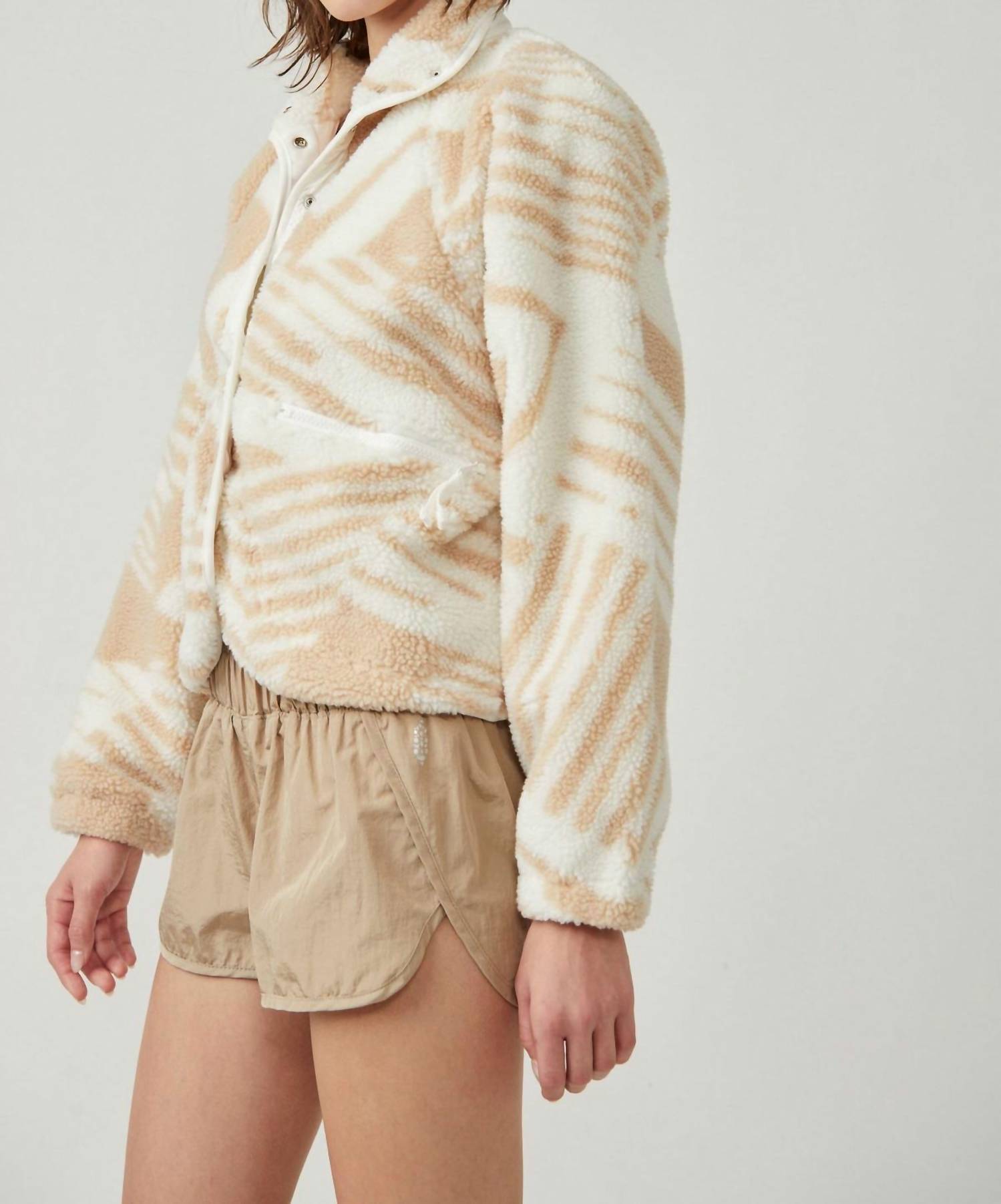 Agasalhe-se com esta adorável jaqueta de pelúcia que vai fazer você desejar temperaturas mais baixas. Apresentamos a Jaqueta Rocky Ridge Fleece da Free People, uma companheira estilosa para seus looks casuais e esportivos. Com mangas compridas e fecho frontal por botões, esta jaqueta texturizada de pelúcia na cor Snow Combo oferece um caimento relaxado, ideal para usar em camadas. Confeccionada em 100% poliéster com forro de 95% algodão e 5% elastano, ela conta com bolsos práticos com zíper e apliques de nylon. Perfeita para usar em trilhas ou depois da academia, esta jaqueta oferece conforto e aconchego com seu fleece felpudo.