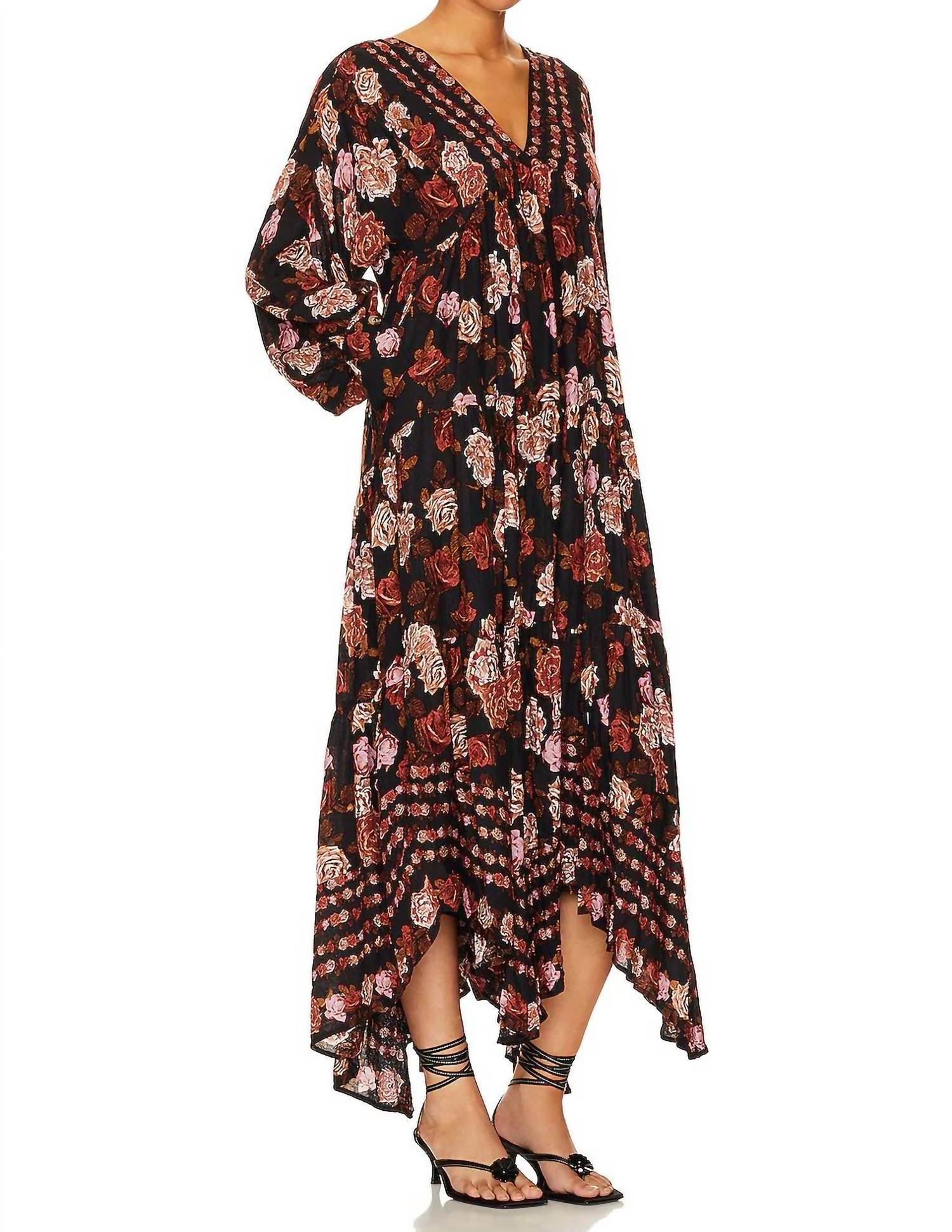 Quem não ama um bom vestido longo? Este você vai querer usar em todas as estações. Mangas longas e bufantes e corpete descontraído e chique. Incorpora a elegância despreocupada, sinônimo da marca. Estampa encantadora de rosas no tecido preto combinado. Confeccionado em viscose macia. Oferece um ajuste confortável. Design pull-on, cintura império e decote em V. Realça seu charme feminino. Fácil de cuidar, basta lavar à mão e pendurar para secar para manter seu visual requintado. Adore a beleza atemporal das estampas florais e o estilo descontraído, porém sofisticado.