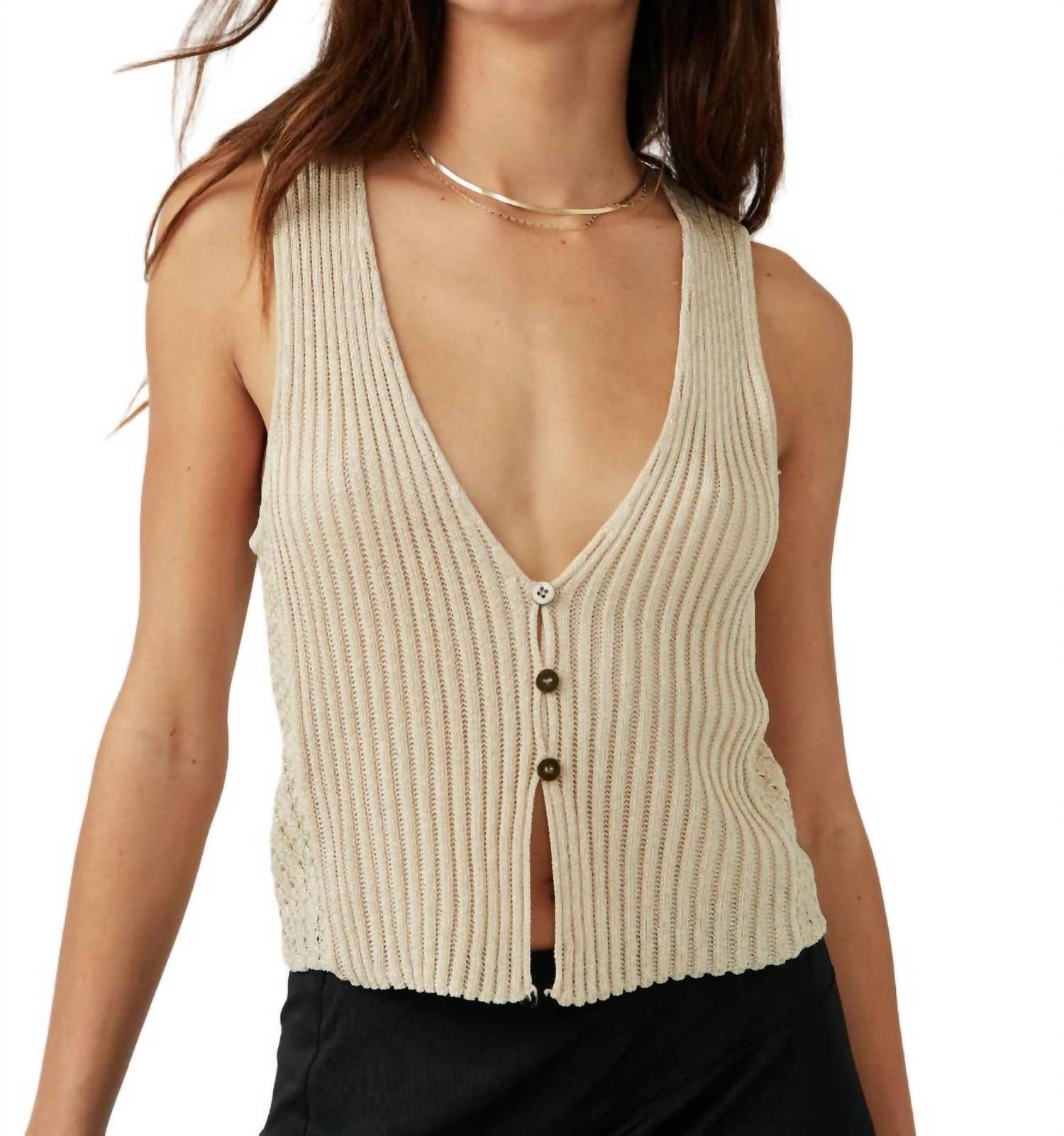 Use este colete sobre um look todo preto para um visual perfeitamente elegante. Fechamento parcial por botões frontais. Tecido de malha justa. A peça é feita com um tecido semitransparente, que pode deixar roupas íntimas visíveis. 95% viscose, 3% poliamida, 2% fibra metalizada. Fabricado na China. Lavar à mão.