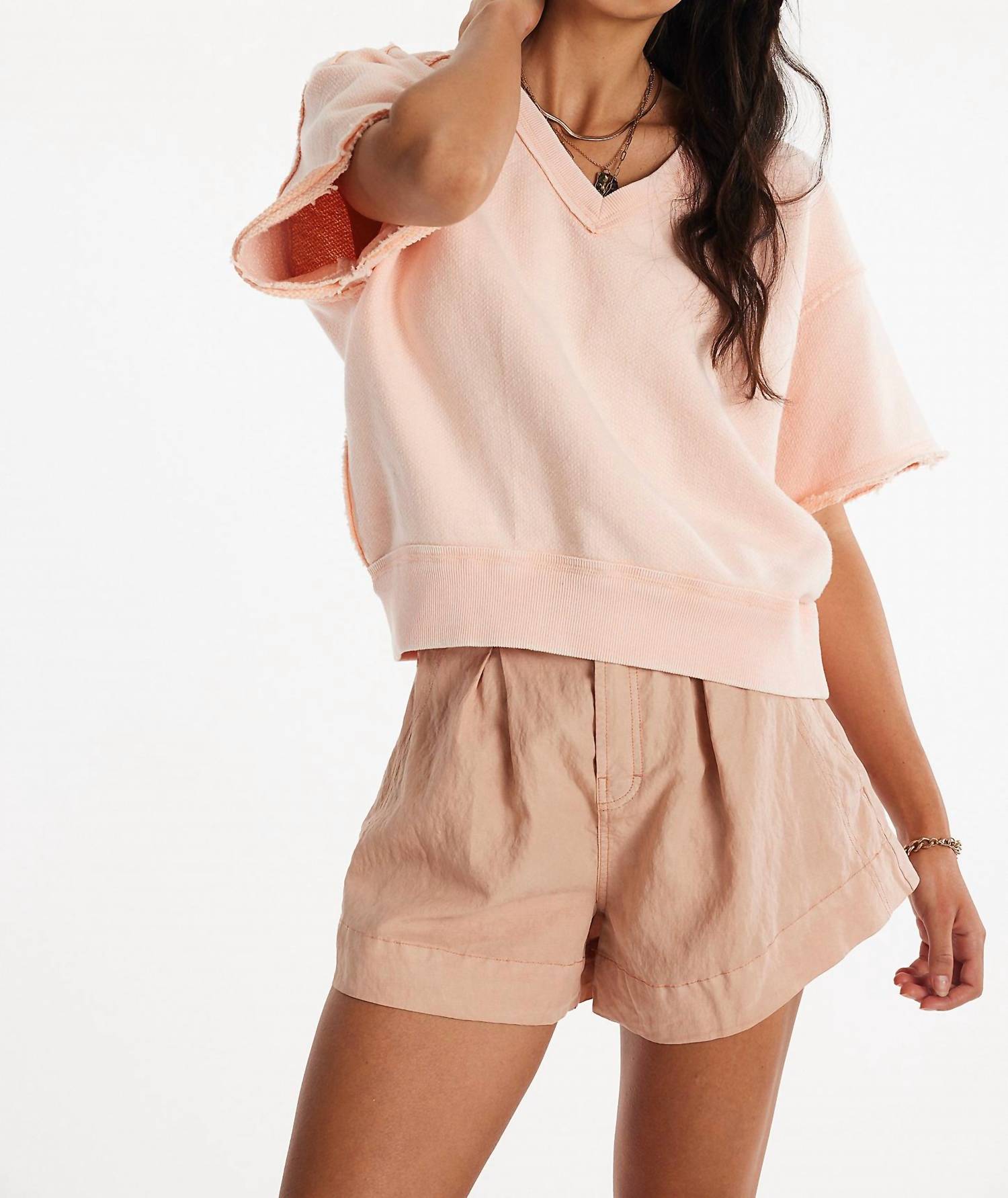 Não importa se você está correndo pela cidade ou relaxando em casa, este moletom serve para ambos. Eleve seu guarda-roupa casual com o moletom "So Easy" da Free People, confeccionado para mulheres em um vibrante tom de pêssego tropical. Este pulôver de manga curta apresenta um caimento solto e longo, com decote em V, ombros caídos e bainha canelada grossa e marcante. Confeccionada inteiramente em algodão durável, esta peça texturizada adiciona um toque casual a qualquer conjunto, medindo 55 cm de comprimento. Desfrute da praticidade sem costura com seu estilo pull-on e fácil de cuidar, pois é lavável à máquina e adequada para secagem em secadora.