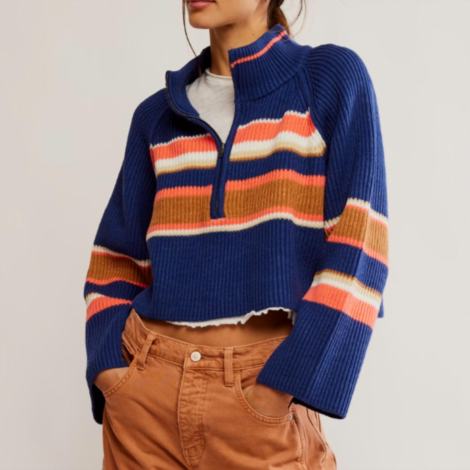 Eleve suas combinações com o Conjunto Listrado Greta Half Zip da Free People, uma peça contemporânea em índigo perfeita para qualquer ocasião. Com mangas compridas raglan folgadas e um elegante fecho de meio zíper, este pulôver é confeccionado em uma mistura premium de 47% algodão, 31% acrílico, 12% viscose, 6% poliéster e 4% poliamida. Com silhueta quadrada e caimento levemente cropped, mede 117 cm de busto e 47 cm de comprimento (tamanho pequeno). Cuidados: Lavar à mão e secar no varal para manter a textura macia e canelada da malha.