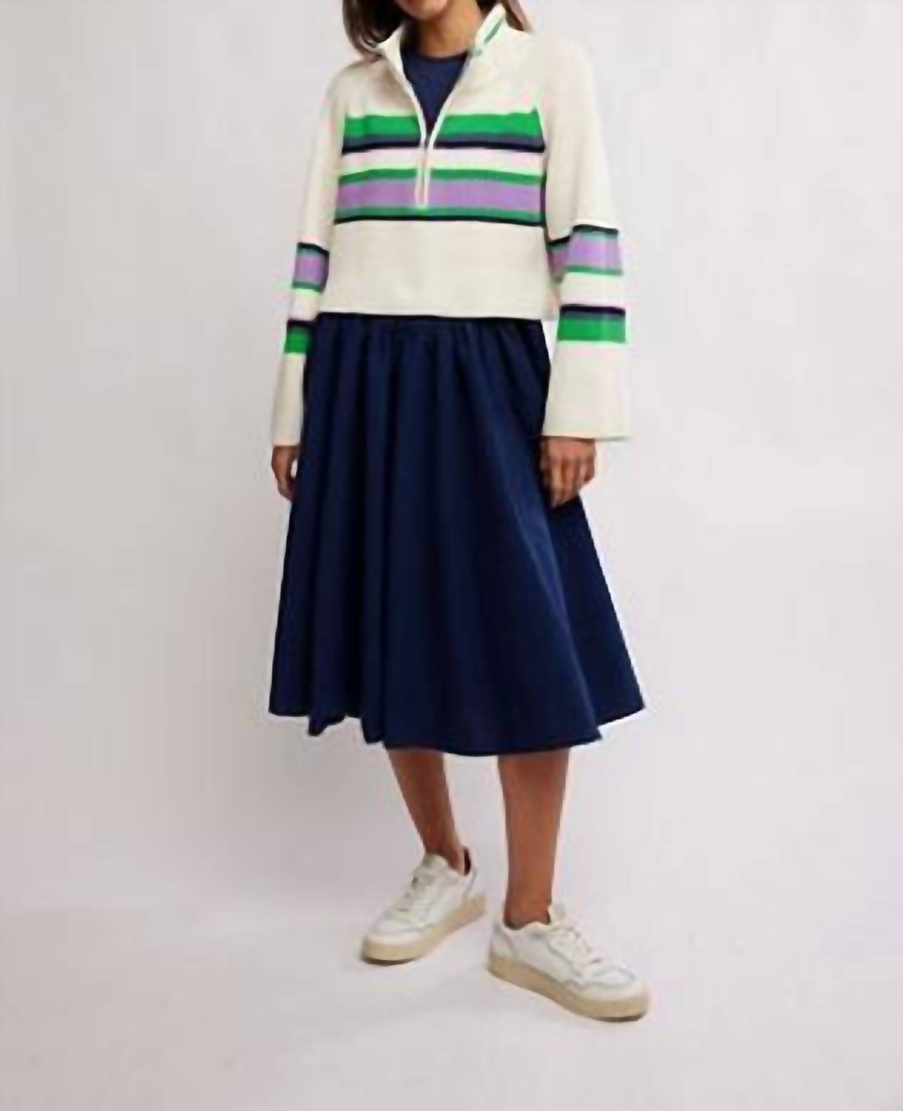 Apresentamos o suéter listrado Greta Half Zip da Free People, perfeito para dar um toque descontraído ao seu guarda-roupa. Este suéter de manga comprida apresenta uma elegante estampa listrada em uma combinação exclusiva de Sugar Swirl, e a gola adiciona um toque de classe. Feito de uma mistura de algodão confortável e medindo 47 cm de comprimento, ele oferece estilo e aconchego. O fecho de zíper o torna uma opção prática para um uso sem esforço.