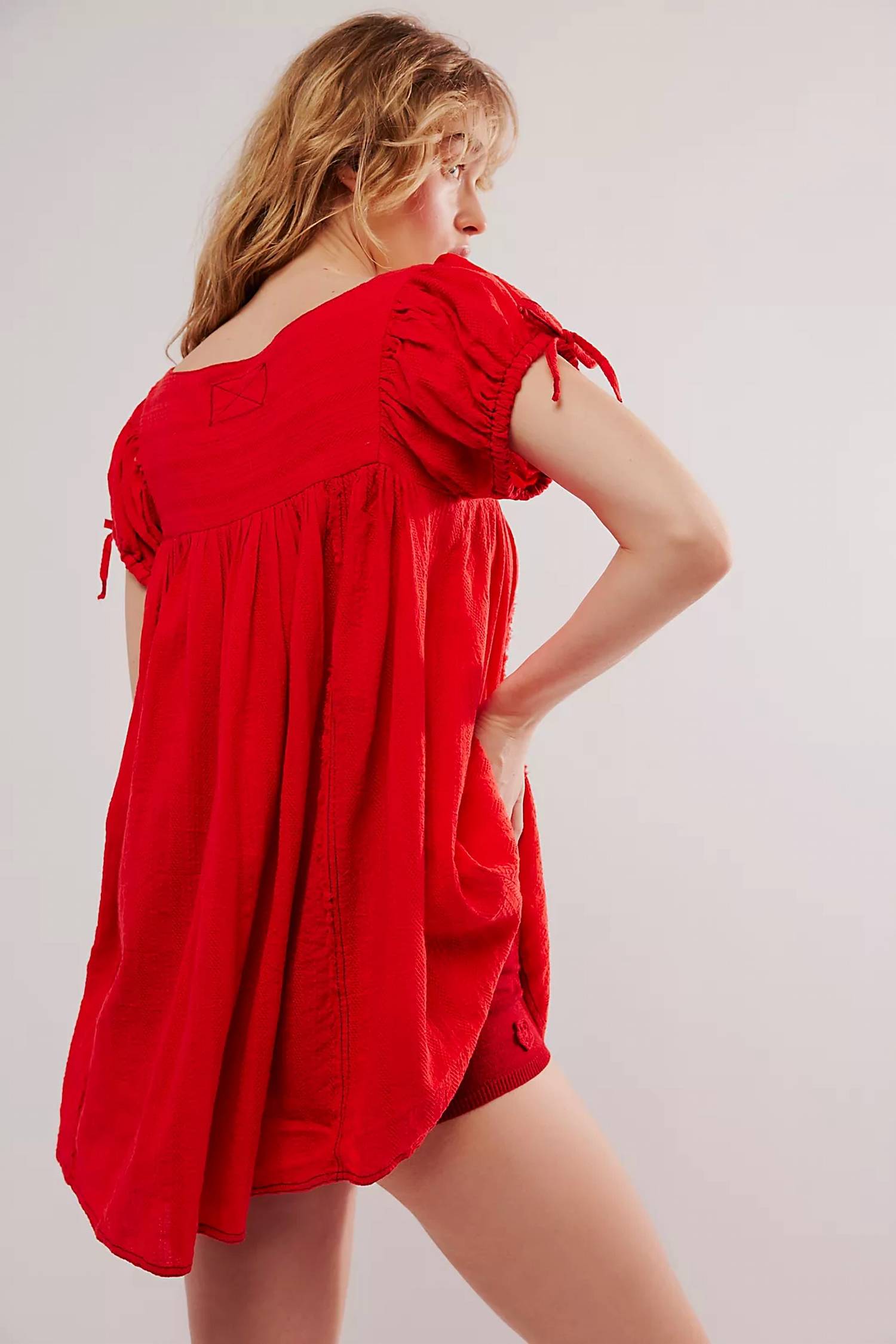 Esta túnica Summer Camp é feita de 99% algodão e 1% elastano, macia e respirável, com decote quadrado, mangas curtas bufantes com detalhes de amarração e uma silhueta sem forma. Ideal para uso em climas quentes, combina bem com looks casuais e chiques.