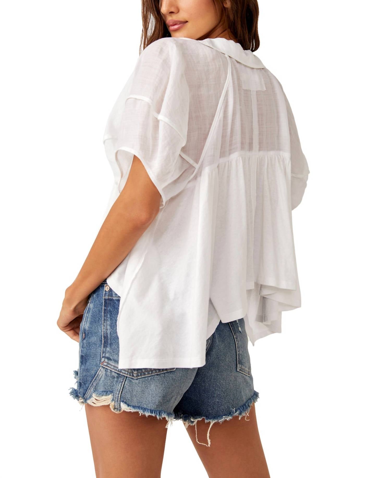 Este top babydoll apresenta um caimento relaxado e fácil de vestir, confeccionado em uma mistura de 100% algodão e 53% rayon, oferecendo conforto e estilo. Possui bainha assimétrica e decote em V clássico, além de ser fácil de cuidar, bastando lavar na máquina com água fria.
