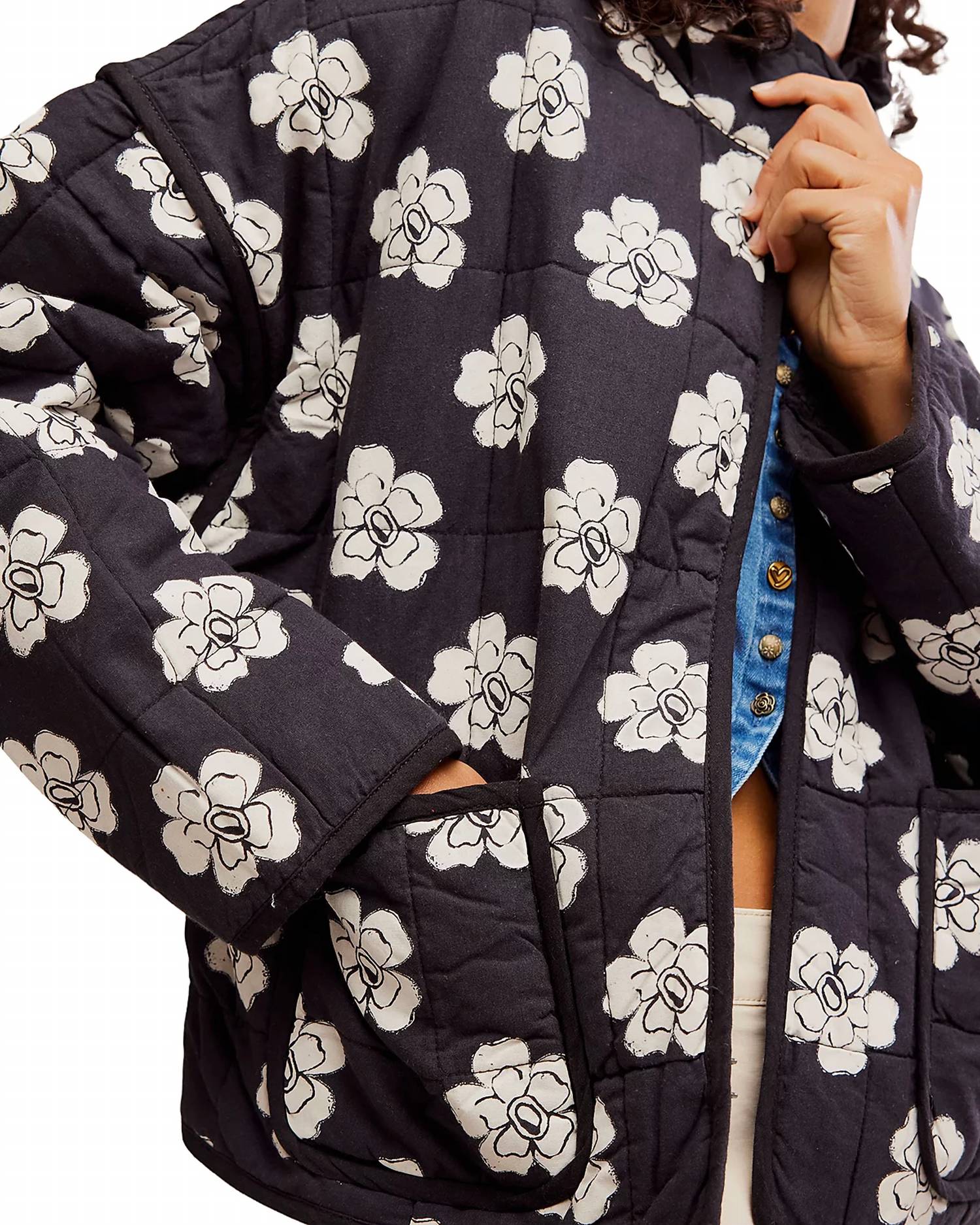 Uma jaqueta casual e descolada que todo guarda-roupa precisa. Conheça a Jaqueta Chloe da Free People, uma adição chique ao seu guarda-roupa com seu estilo dólmã despojado e estampa floral cativante. Esta jaqueta casual oferece conforto e estilo. Possui mangas compridas, gola careca e fecho prático de colchete. Para melhor cuidado, lave na máquina com água fria e seque no varal.