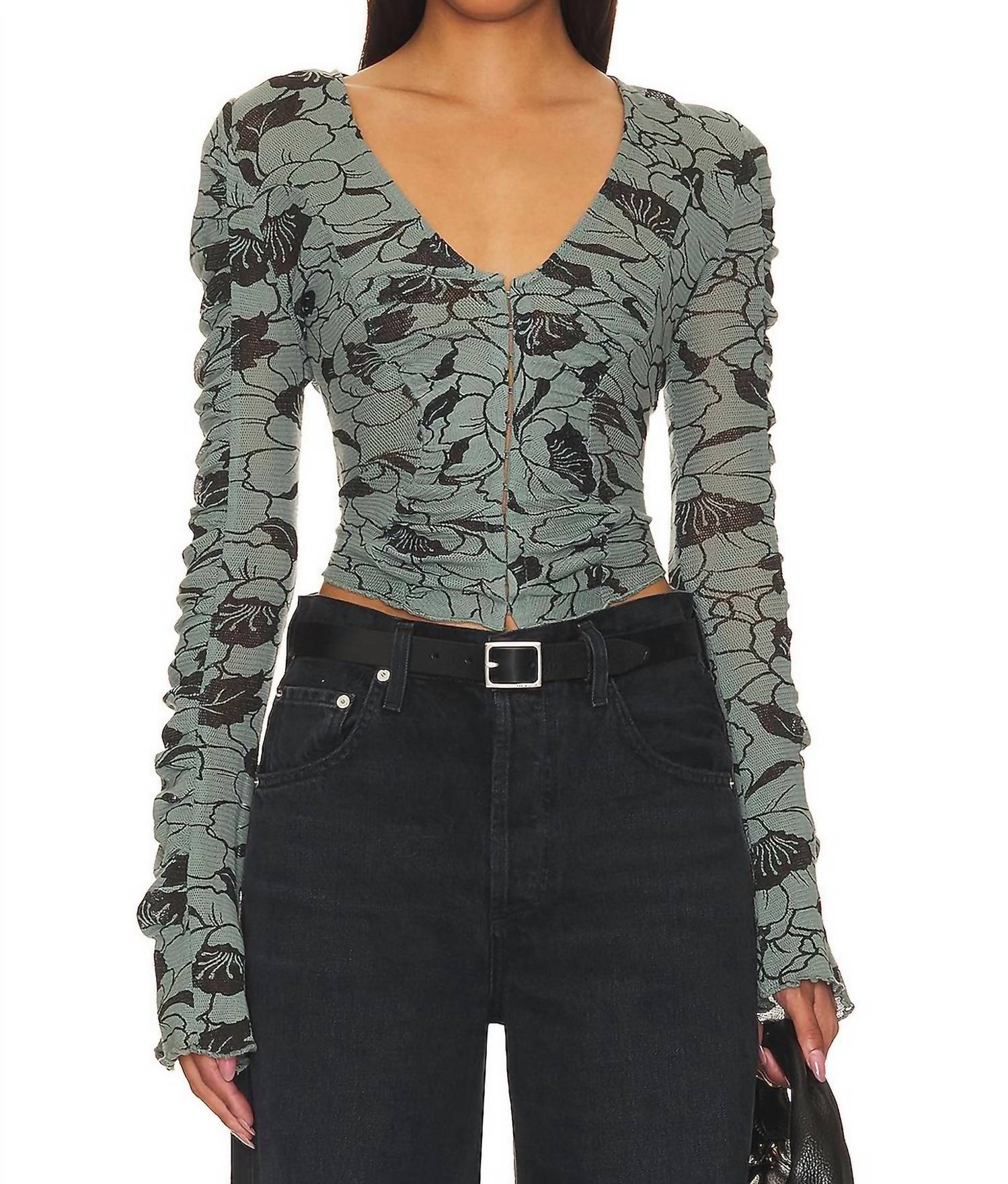 Fecho frontal com colchetes. Acabamento em alface. Tecido jersey franzido de peso médio. A modelo tem 1,75 m e veste tamanho XS. Lavar à mão. Tecido: 100% algodão. Fabricado na Índia.
