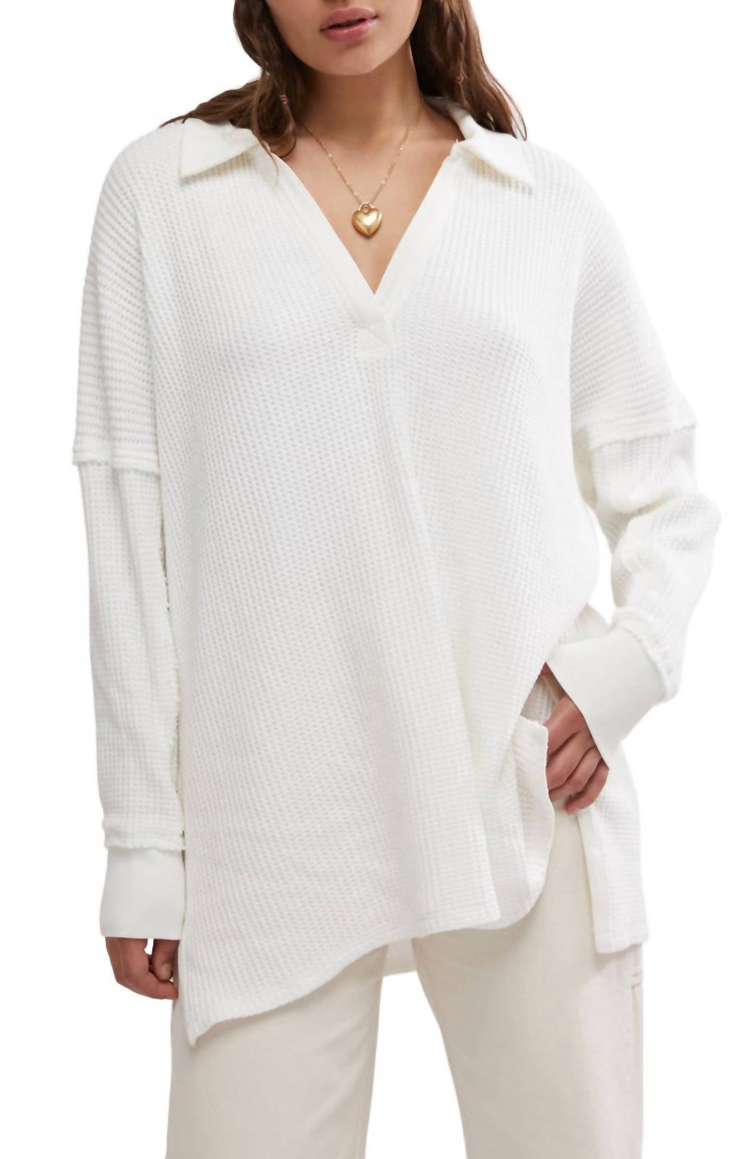 A camiseta de manga comprida perfeita que combina com quase tudo. Descubra a elegância descontraída da Polo Térmica Travis Oversize da Free People, confeccionada em uma mistura de algodão macio com 97% algodão e 3% elastano. Esta blusa de manga comprida na cor marfim apresenta gola aberta e gola ampla, oferecendo conforto e estilo. O comprimento de 73 cm da peça adiciona um toque elegante a qualquer look, perfeito para usar em camadas ou sozinho. Projetada com praticidade em mente, esta peça é importada e fácil de cuidar, com instruções de lavagem à máquina e secagem em secadora.