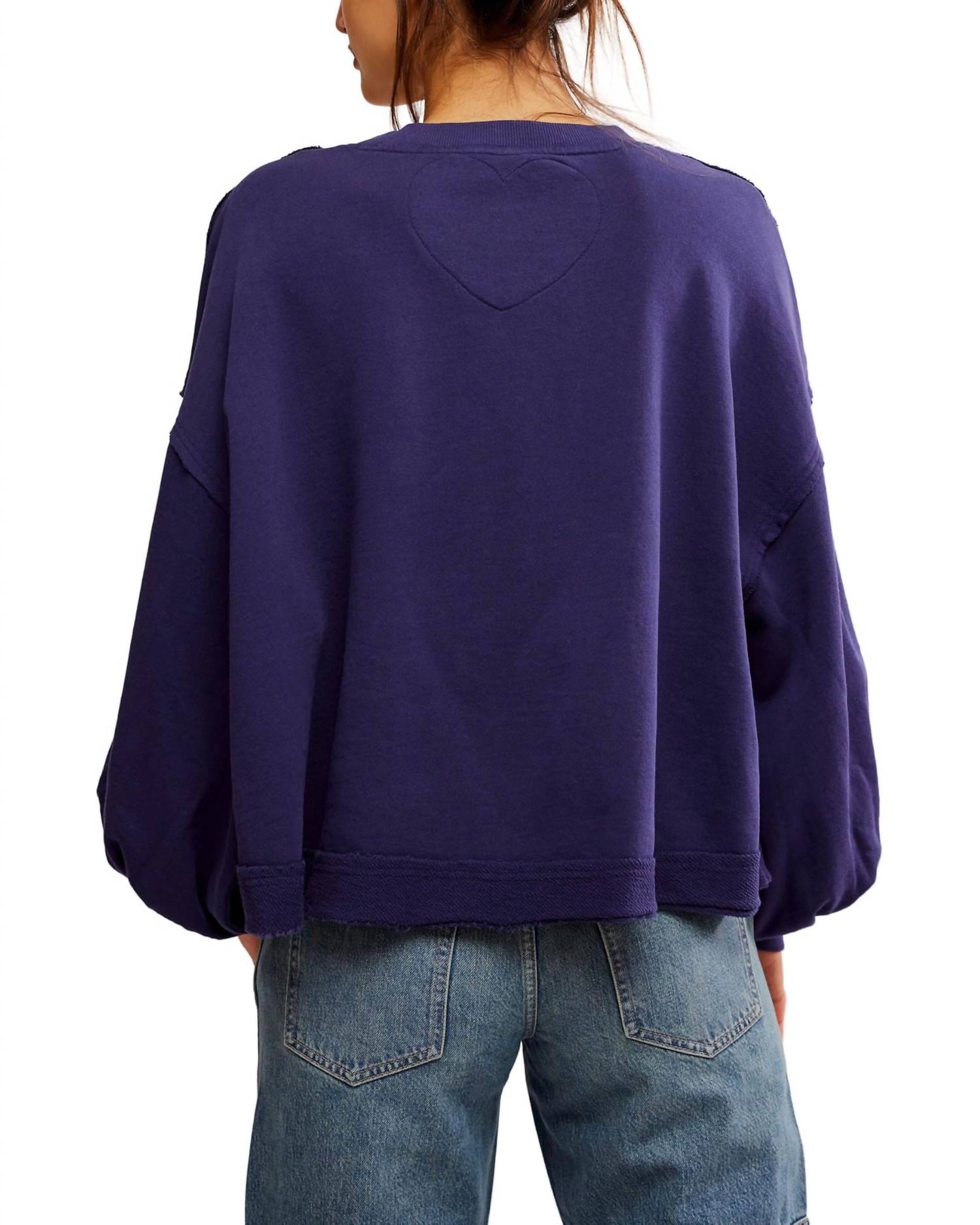 Seja para correr pela cidade ou relaxar em casa, este moletom serve para ambos. Este moletom Trish é confeccionado em 100% algodão na cor Eclipse, com caimento oversized, mangas longas com ombros caídos e decote redondo. Possui punhos canelados, bainhas sem acabamento, costuras aparentes e um detalhe de coração nas costas, proporcionando um visual aconchegante e estiloso.