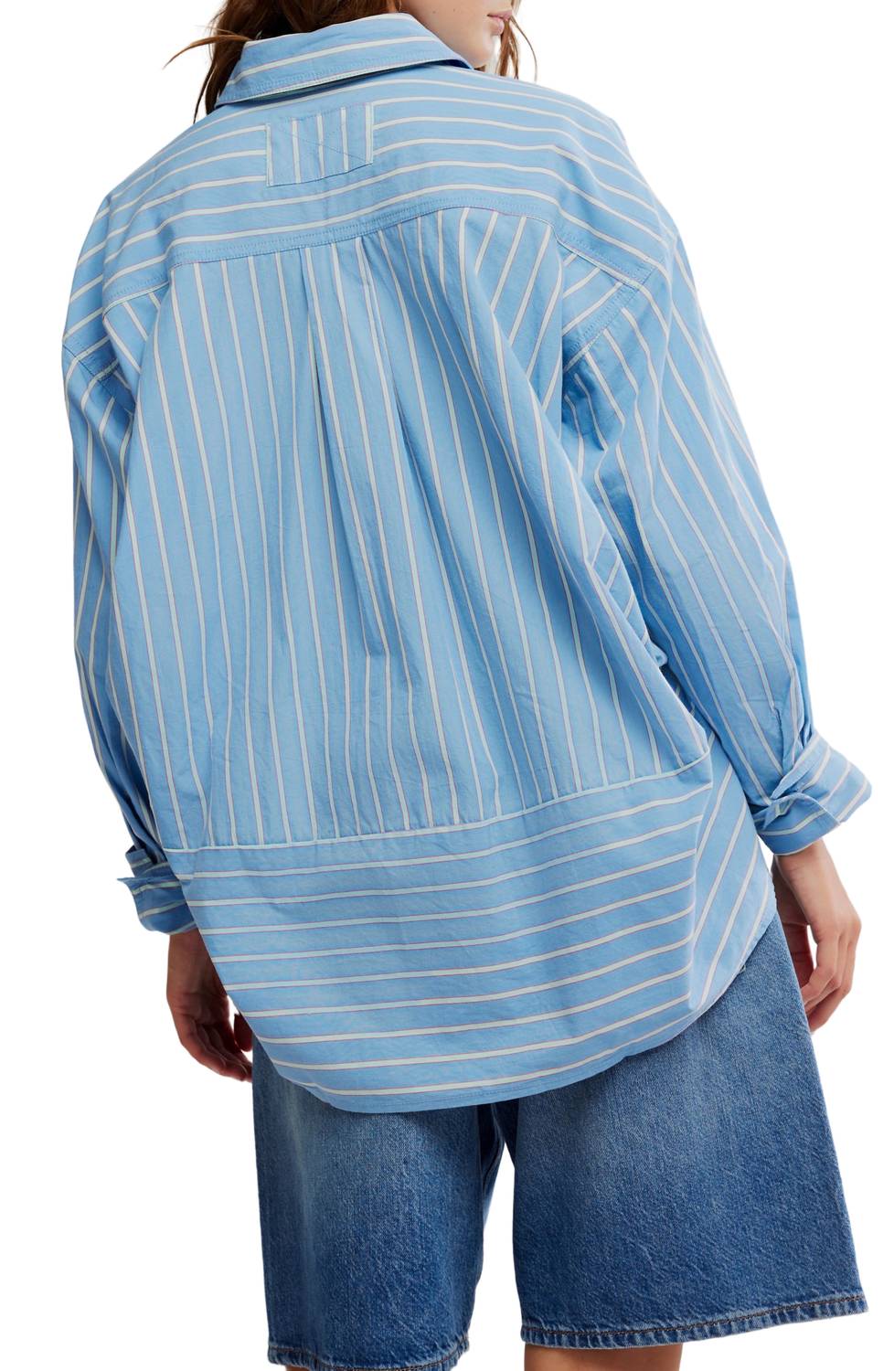 Apresentamos a Camisa Varsity Vibes Stripe Oversize com Botões da Free People, um destaque em listras elegantes. Esta peça oversized, confeccionada em 100% algodão, possui mangas longas com punhos abotoados e mede 73 cm de comprimento na frente e 81 cm de comprimento nas costas (tamanho M). Confeccionada em popeline de algodão leve, é perfeita para um look casual, porém elegante. Fechamento: Botão. Cuidados: Lavagem a seco ou lavagem à máquina, secagem em tambor. Fabricada com qualidade importada.