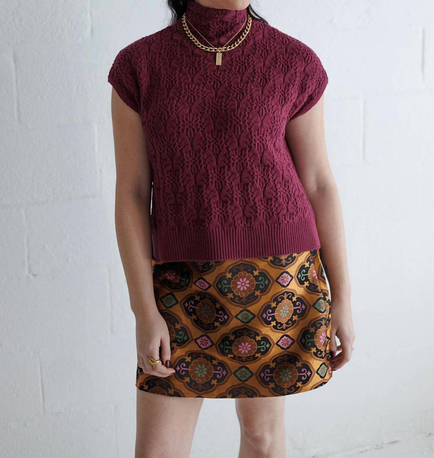 Eleve seu conforto e estilo com o suéter Vickie Mock Neck da Free People, impecavelmente projetado para uma experiência chique e aconchegante. Este suéter na cor de frutas vermelhas apresenta mangas curtas e um padrão texturizado perfeito para qualquer look descontraído. Decote: Mockneck. Abrace a elegância versátil que combina com qualquer ocasião sem comprometer o calor.