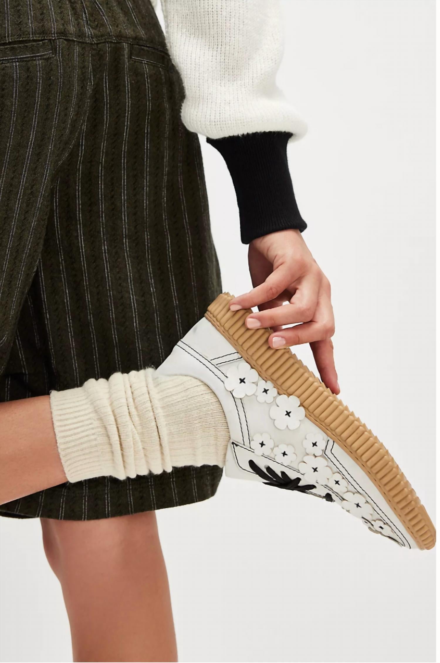 Eleve seu estilo com o tênis Wallflower Wimberly da Free People, confeccionado em couro Arctic Fox. Este tênis de cano baixo possui cabedal em couro, apliques florais e entressola texturizada para um toque único. A costura contrastante e o solado de borracha adicionam um toque visual marcante, enquanto os cadarços cruzados garantem um calce fácil. Confeccionados com a estética vintage característica da marca, estes tênis são importados e perfeitos para adicionar conforto e estilo a qualquer look.