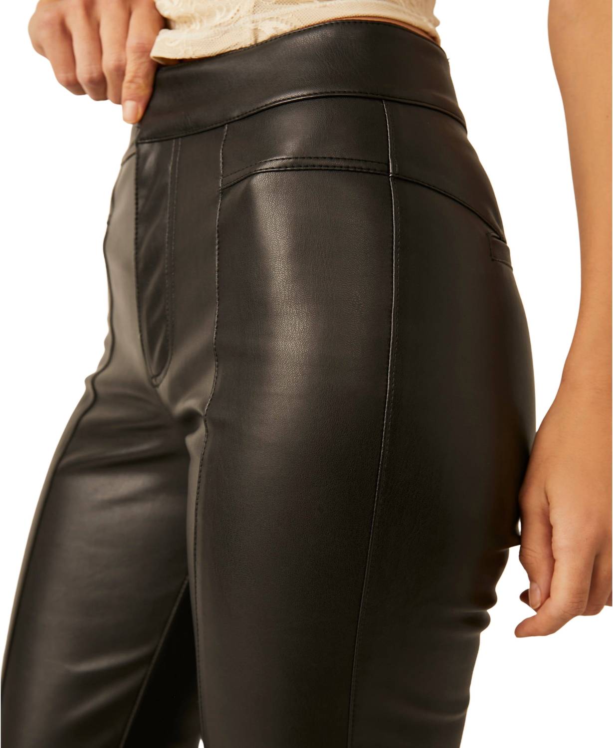 Tão elegantes com um toque de ousadia sem esforço, estas calças indispensáveis ​​vão chamar a atenção a cada uso. Modelagem: Cintura alta, modelagem flare slim. Características: Fabricação em couro vegano amanteigado, braguilha com zíper e fecho de gancho, bolsos traseiros vazados, costuras elegantes em toda a peça. Lavagem à máquina com água fria. Importado. Cintura: 75 cm. Quadril: 93 cm. Gancho: 28 cm. Entrepernas: 81 cm.