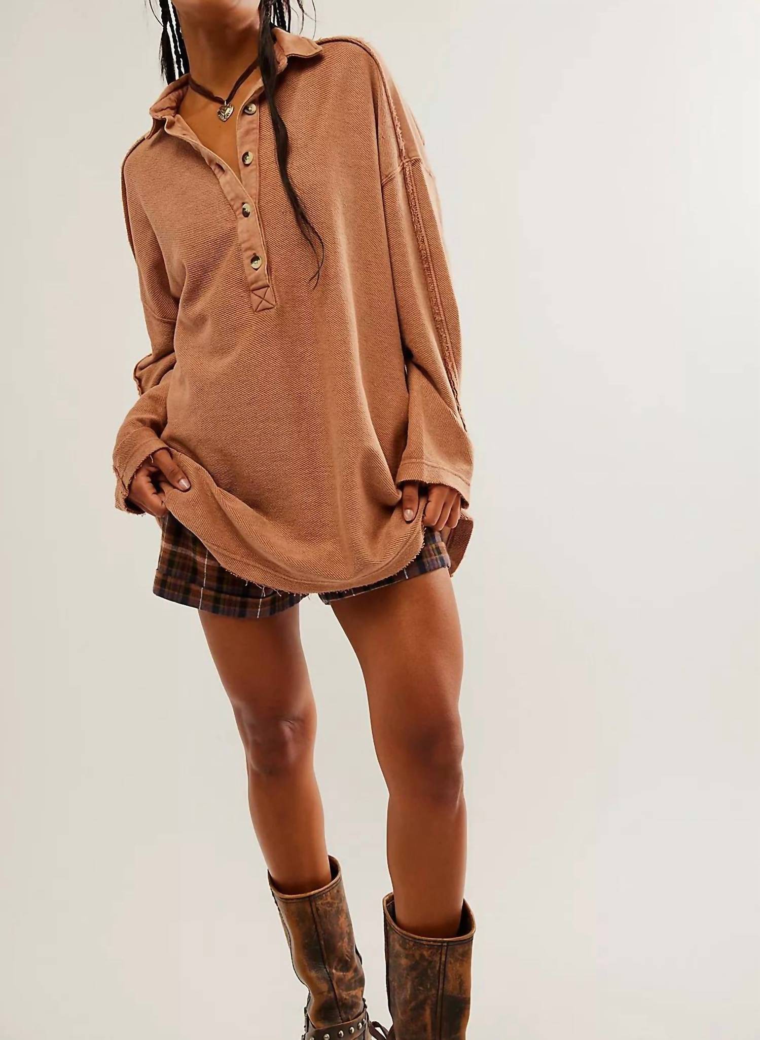 Combine com seus jeans e chinelos favoritos para sua próxima saída à noite entre amigas. Blusa estilo polo despojada, confeccionada em malha macia, com abertura exagerada nos botões e detalhe de costura aparente, em uma silhueta oversized e folgada. Detalhe de bolso lateral. Mangas dolman caídas. Silhueta oversized. Lavagem à máquina com água fria. 100% algodão. Importado. Medidas para tamanho pequeno: Busto: 137 cm. Comprimento: 84 cm. Comprimento da manga: 49 cm.