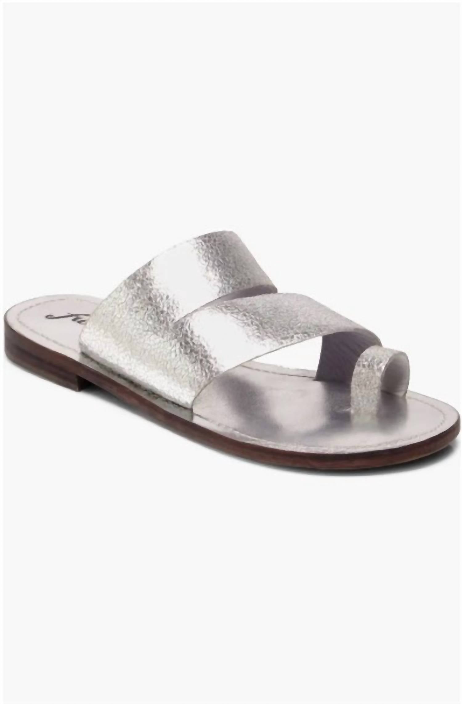 Tiras largas de couro com passador para os dedos. Palmilha fina e flexível para maior conforto. Sola plana. Cabedal, forro e solado em couro. Importado.