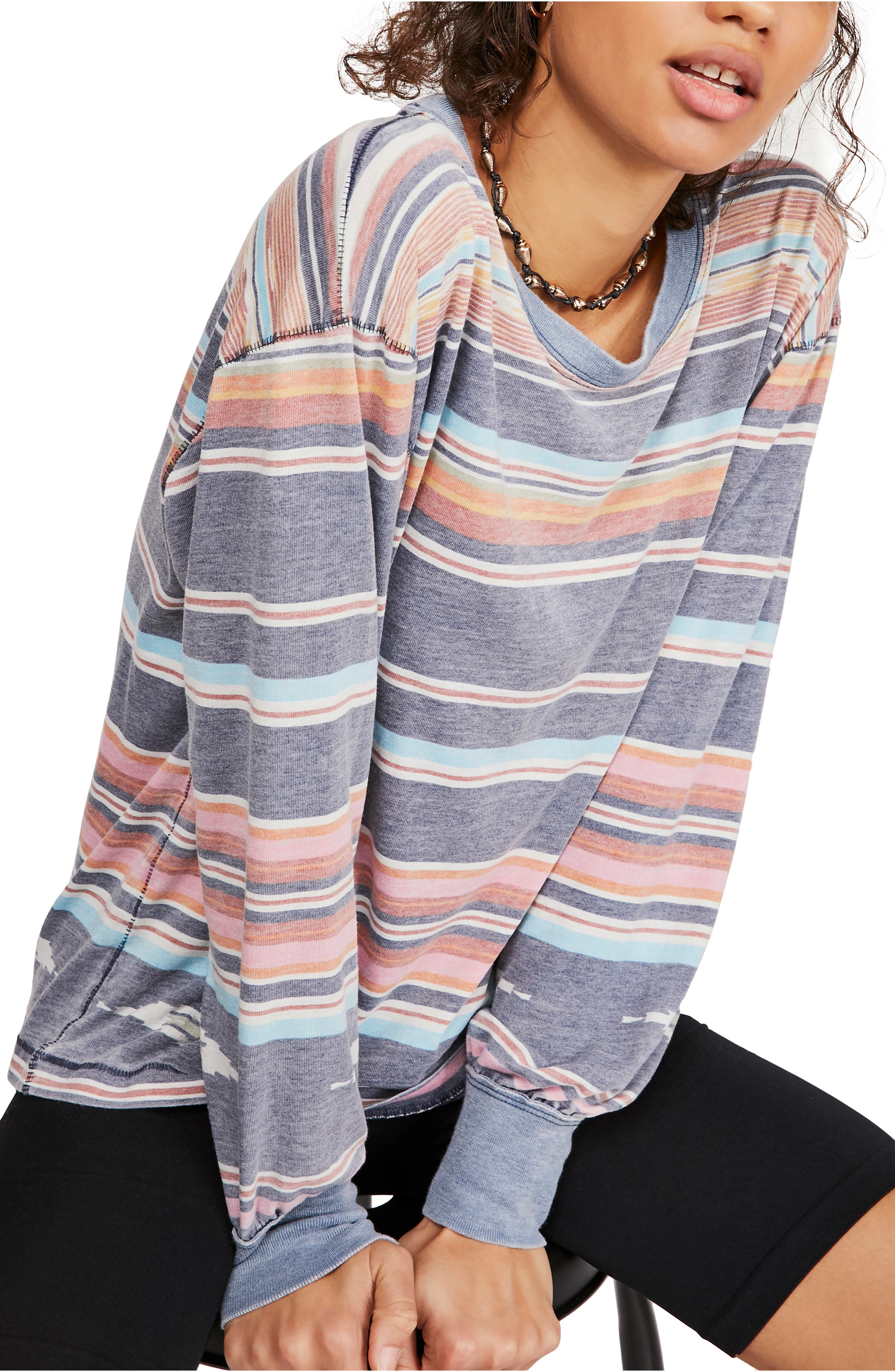 Blusa feminina Arielle estampada manga comprida azul tamanho grande da Free People