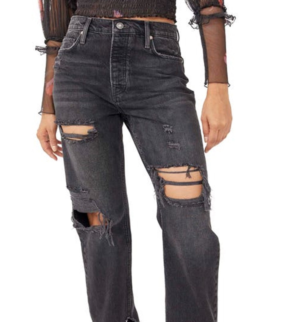 Calça jeans feminina estilo boyfriend, larga e afunilada, preta, tamanho 27, da Free People