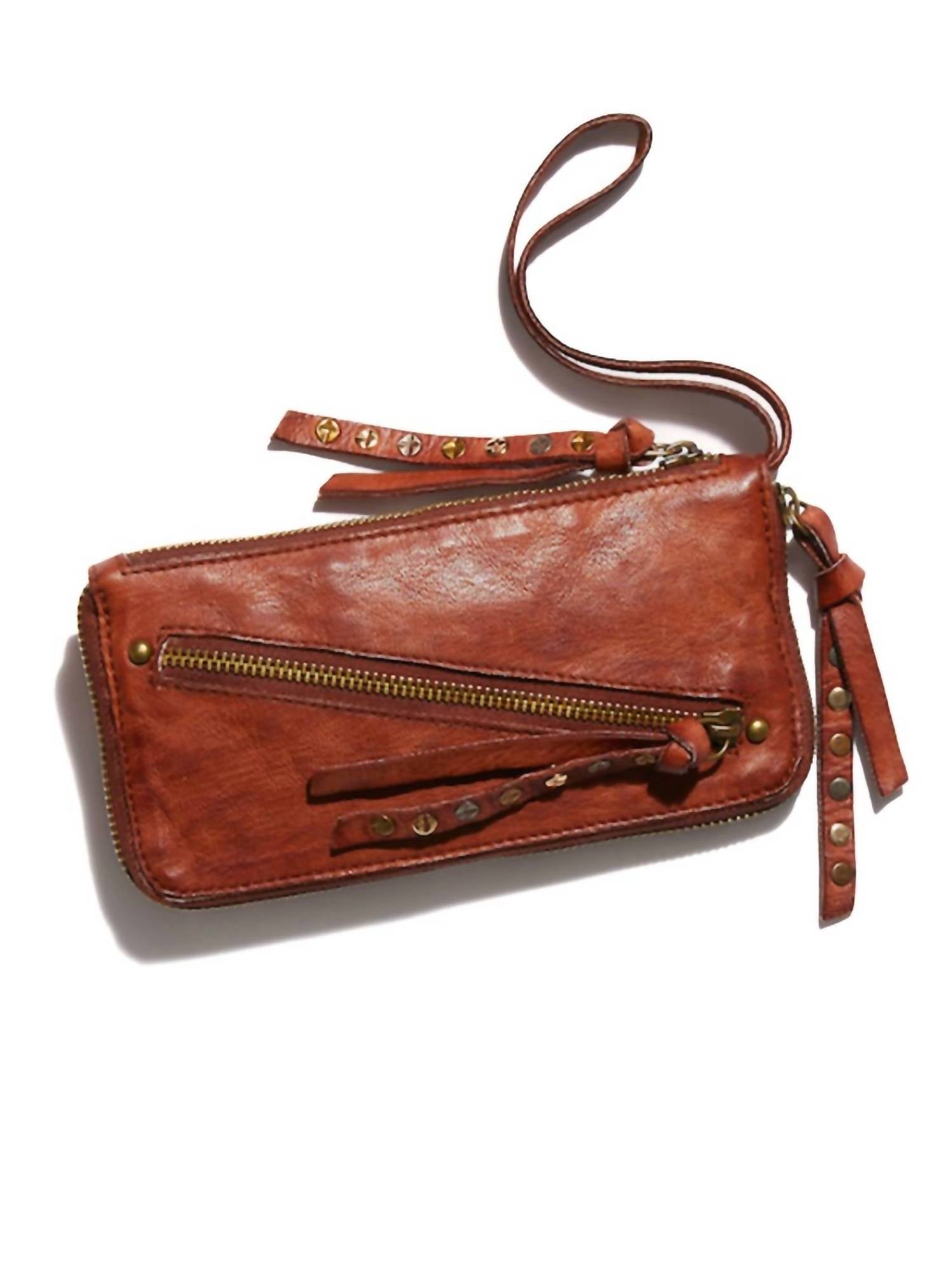 Esta carteira feminina com acabamento envelhecido é feita de couro durável com detalhes envelhecidos, amplos compartimentos para cartões, bolsos e fecho de zíper seguro. Inclui uma pulseira prática.