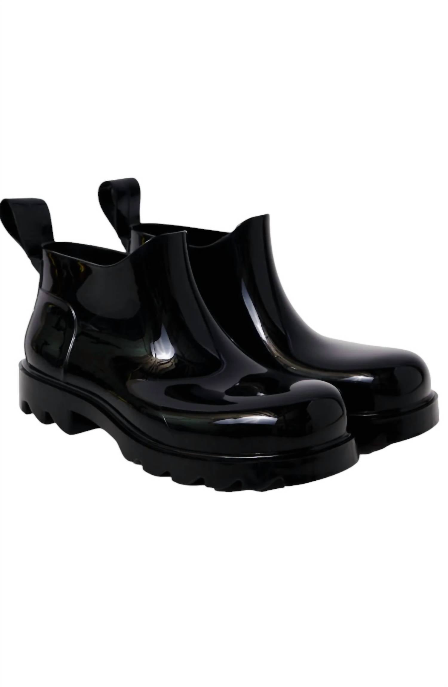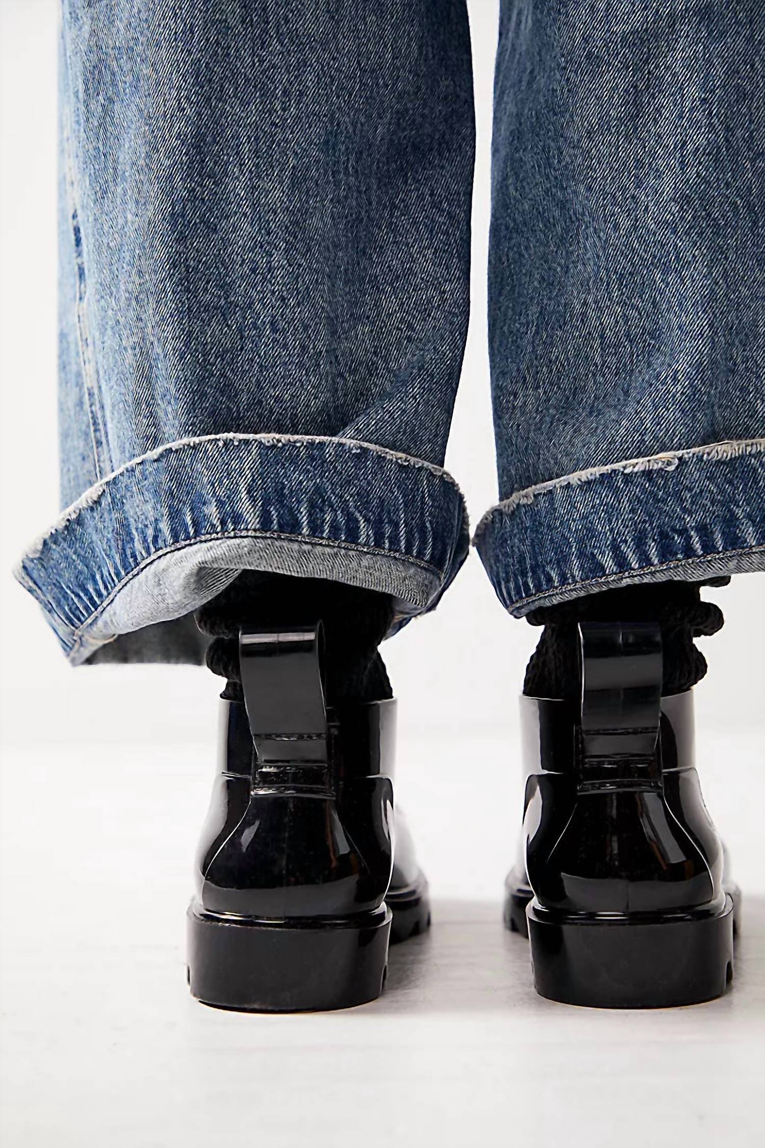 Dia chuvoso? Sem problemas! As galochas mais fofas e confortáveis ​​da estação. Saia com estilo com as Botas de Chuva Femininas High Street Impermeáveis ​​da Free People, habilmente confeccionadas com cabedal totalmente em PVC para um visual elegante e chique. Estas botas de cano baixo apresentam bico arredondado diferenciado e solado robusto e dentado, perfeito para enfrentar o tempo chuvoso com facilidade. Completas com puxadores e solado de borracha, elas oferecem um toque utilitário a um modelo clássico inspirado no Chelsea. Com salto de 2,5 cm, palmilha removível, palmilha acolchoada e forro sintético, estas botas importadas prometem conforto e estilo para os dias chuvosos.