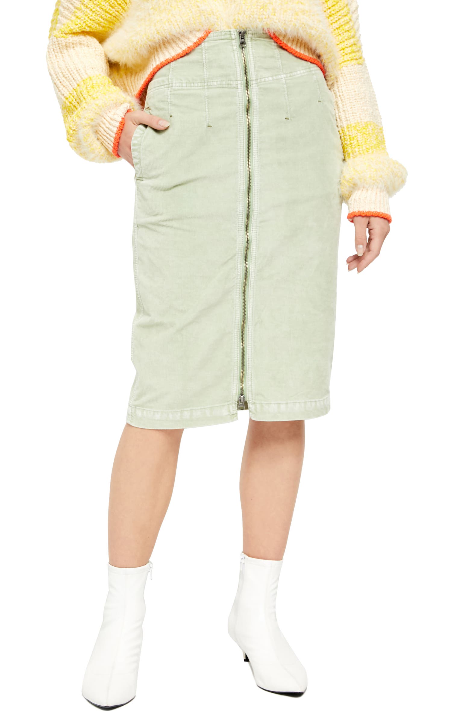 Saia de veludo cotelê I Want It All feminina da Free People, verde escuro, tamanho 27