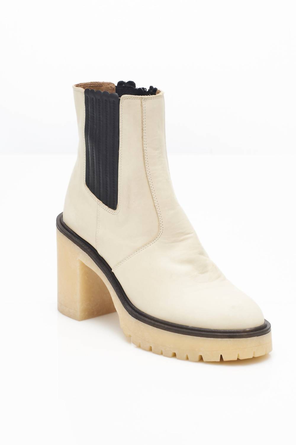 Apresentando um design de salto grosso com detalhes laterais elásticos e uma silhueta slim. Estas botas apresentam detalhes intencionalmente desgastados para um visual desgastado. Fechamento com zíper lateral. Palmilha acolchoada. Biqueira amendoada. Modelagem fiel ao tamanho, se estiver entre tamanhos; sugerimos um tamanho maior. Medidas para o tamanho 39. Circunferência do tornozelo: 25,4 cm; Cano: 11,5 cm; Circunferência do cano: 25,4 cm; Salto: 9,2 cm. Fabricado na Espanha.