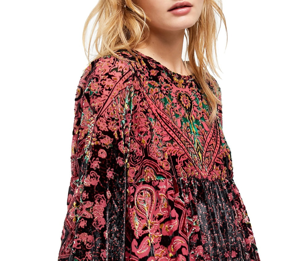 Vestido feminino Free People com manga comprida e acima do joelho, cintura império, vermelho, tamanho médio