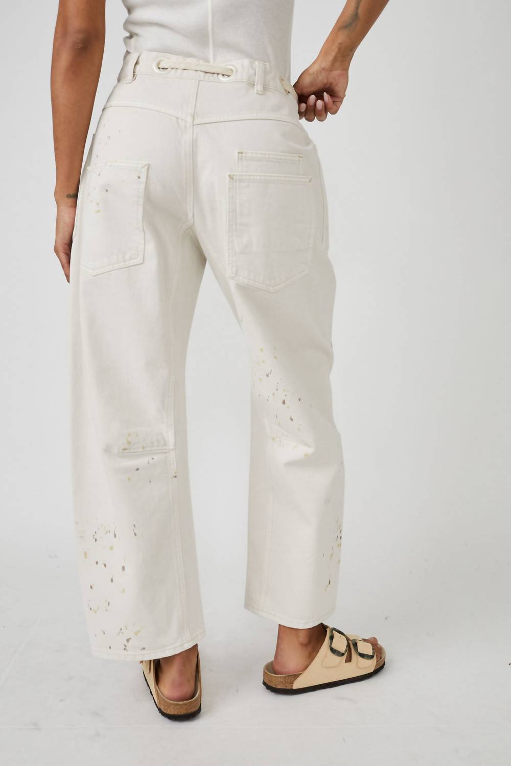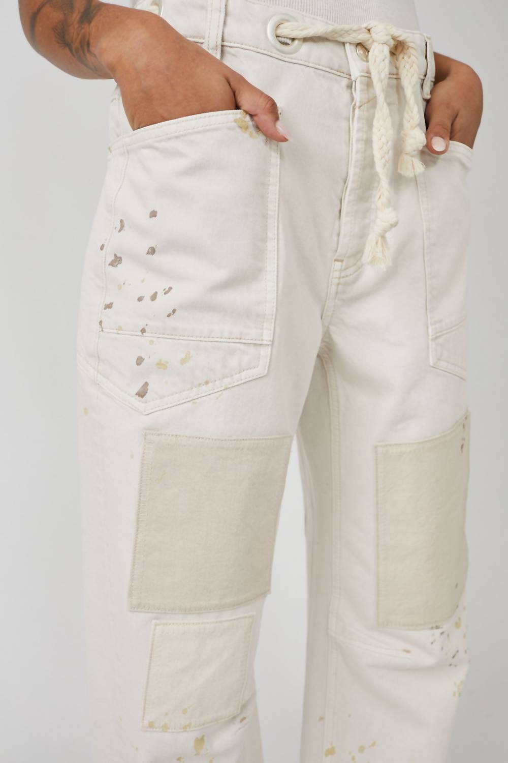 Apresentamos a Calça Feminina Moxie Low Slung da Free People, uma peça de destaque da coleção We The Free. Confeccionada em algodão, esta calça branca estampada apresenta um caimento relaxado e médio, com 44 cm de altura e 66 cm de costura interna. Distinguida pelos detalhes desgastados e detalhes em respingos de tinta, ela inclui bolsos grandes e cordão na cintura contrastante, além de fecho de botão. As instruções de cuidado especificam lavagem à máquina, garantindo que estas calças marcantes mantenham seu charme ousado a cada uso.