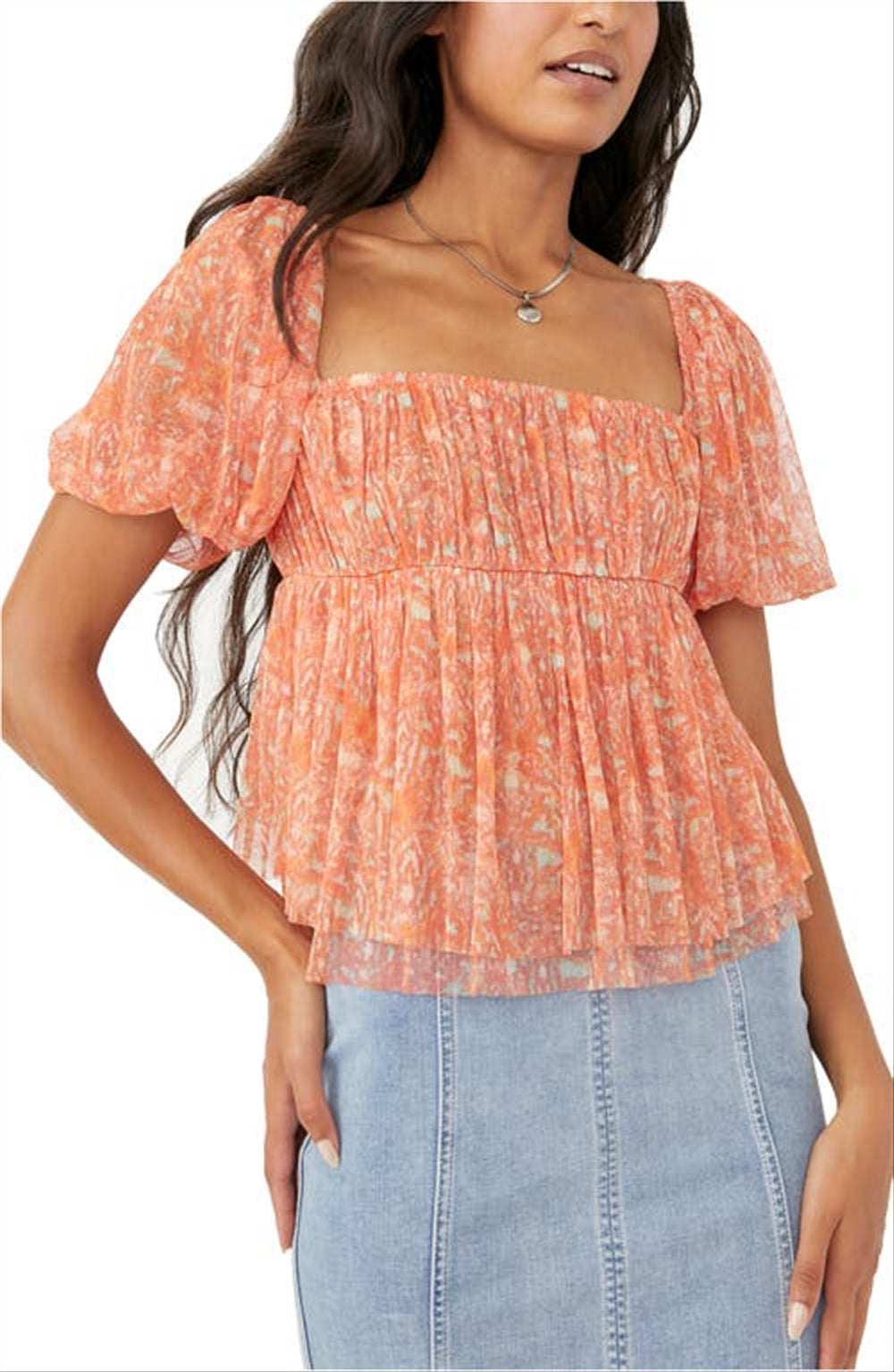 Vestido com cintura para cima | Decote quadrado | Mangas com babados | Costas com amarração